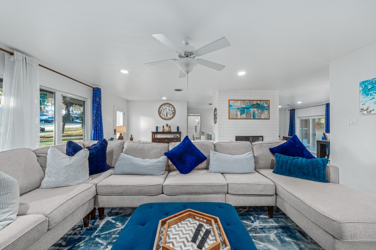 Faigh blaiseadh ar áilleacht shaol an locha leis an seomra leapa 7 seo (is é ceann an tríú hurlár nach bhfuil doras air) ar imeall an locha, os cionn 4000 troigh chearnach abhaile! Bí ag súgradh ar feadh na trá gainimh bháin, bain sult as an radharc ón bpaitió scagtha le cistin lasmuigh nó féach ar na réaltaí agus tú ag tógáil gallúnach i do thobán te príobháideach féin ar bhalcóin an dara hurláir! Tá an teach seo athchóirithe as an nua agus tá sé deartha go foirfe chun freastal ort féin agus ar do theaghlach agus ar do chairde go léir.