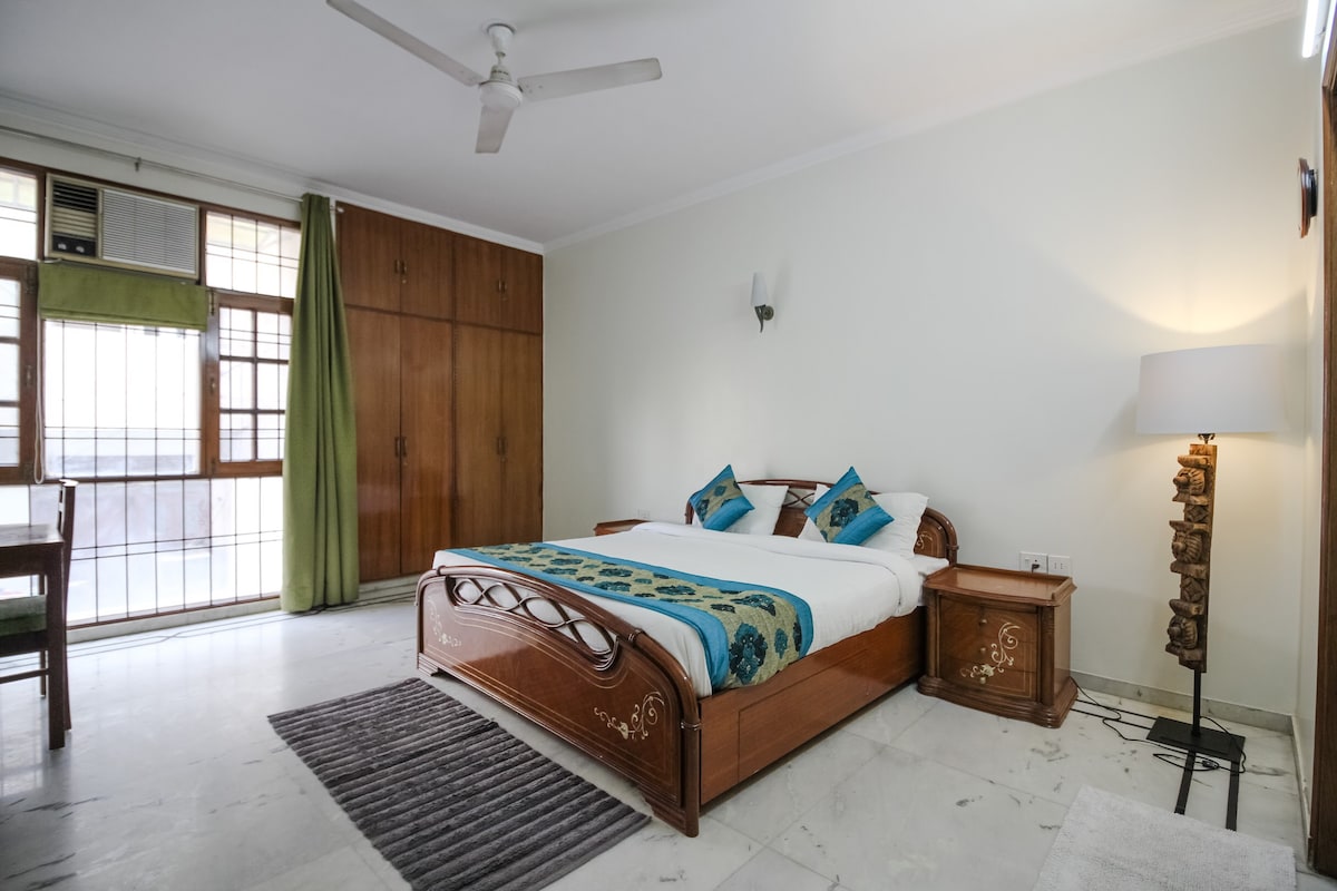 *Tithe Sláintithe* Faoi Mo Dhíon Árasáin Seirbhísithe - Tithe a Bhaineann le Gradam. Seomra Folctha príobháideach 3 Seomra Leapa Maol ar an gcéad urlár ag Green Park, AIIMS & Safdarjung Ospidéal sa Pháirc Ghlas. Seomraí leapa teolaí ina bhfuil seomra folctha ceangailte, seomra suí ar leith ina bhfuil áit itheacháin & cistin iomlán - gás sorn, cuisneoir, micreathonnán, citeal leictreach, gréithe cócaireachta srl. Glanadh, línéadach, Idirlíon Wi - Fi ardluais, Teilifís Spéire Tata, Meaisín Níocháin san áireamh. 5 nóiméad ó shráidbhaile hauz khas & Dilli Haat - Príomh - Cheantar Turasóireachta!