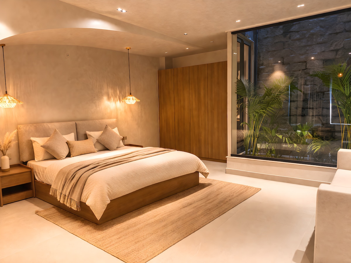 Welcome to Lapstay Gurgaon — where comfort meets style and every stay becomes a memorable experience. Experience modern living in this beautifully designed loft-style duplex apartment located in Sector 74, Gurugram. This two-level luxury suite combines elegant interiors, premium furnishings & thoughtful amenities to ensure a relaxing and enjoyable stay. Large windows allow plenty of natural sunlight to brighten the space, while blackout curtains offer privacy and peaceful rest whenever needed.