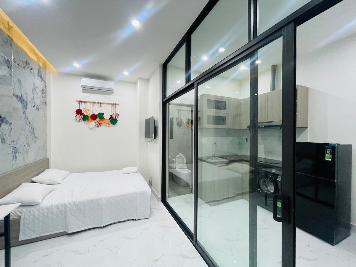 Heileo, is mise Mai, Seo é m'árasán nua ina bhfuil 1 seomra leapa , 1 leaba rí. Tá balcóin agus fuinneoga móra ann, tá an ceantar máguaird an - chiúin. Níl an suíomh ach 5 nóiméad chuig Margadh Oíche Helio. - Tá ardaitheoir san fhoirgneamh - Uisce óil saor in aisce le córas scagacháin uisce - Meaisín níocháin príobháideach agus triomadóir sa seomra - Cistin phríobháideach ina bhfuil saoráidí cócaireachta iomlána - Seirbhís tís ar iarratas - Teilifís le Netflix