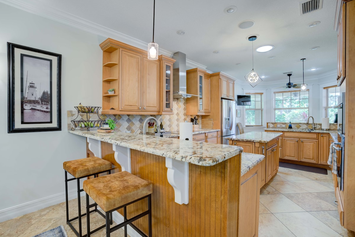 Fáilte! Suíomh foirfe cúpla nóiméad ón trá, ó shiopaí i lár na cathrach, agus ó bhialanna áitiúla. Deartha agus compord agus galántacht chósta san áireamh, tá spás sa teach 3 sheomra leapa seo do suas le 8 n-aoi agus tá sé oiriúnach do theaghlaigh, do lánúineacha agus do ghrúpaí atá ag iarraidh scíth a ligean, iniúchadh a dhéanamh nó obair go cianda in aice leis an aigéan. Cibé acu an bhfuil tú ag rothaíocht chuig an trá, ag glanadh thú féin sa chithfholcadán lasmuigh, nó ag baint taitneamh as tráthnóna sa spás príobháideach lasmuigh, tá meascán foirfe de ghealra Florida agus áisiúlacht nua-aimseartha ar fáil sa teach seo.