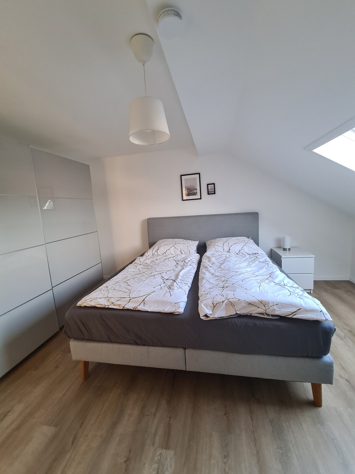 Haigh, a aíonna, cuirimid stiúideo ar fáil duit ina bhfuil cithfholcadán, leithreas agus sabhna. Tá an seomra: - Leaba dhúbailte + leaba shingil - Teilifíseáin le HDMI, calafoirt USB (is féidir le haghaidh tiomántáin chrua le scannáin) - Vardrús - Pláta te - Micreathonnán le feidhm oighinn chomhiompair - Kettle - Déantóir caife - Cuisneoir - Sauna - Gairdín Os a choinne sin tá ollmhargadh (Rewe ar oscailt ó Luan go Satharn go dtí 10 pm) chomh maith le bácús sa Rewe a dhíolann rollaí úra ar an Domhnach freisin.