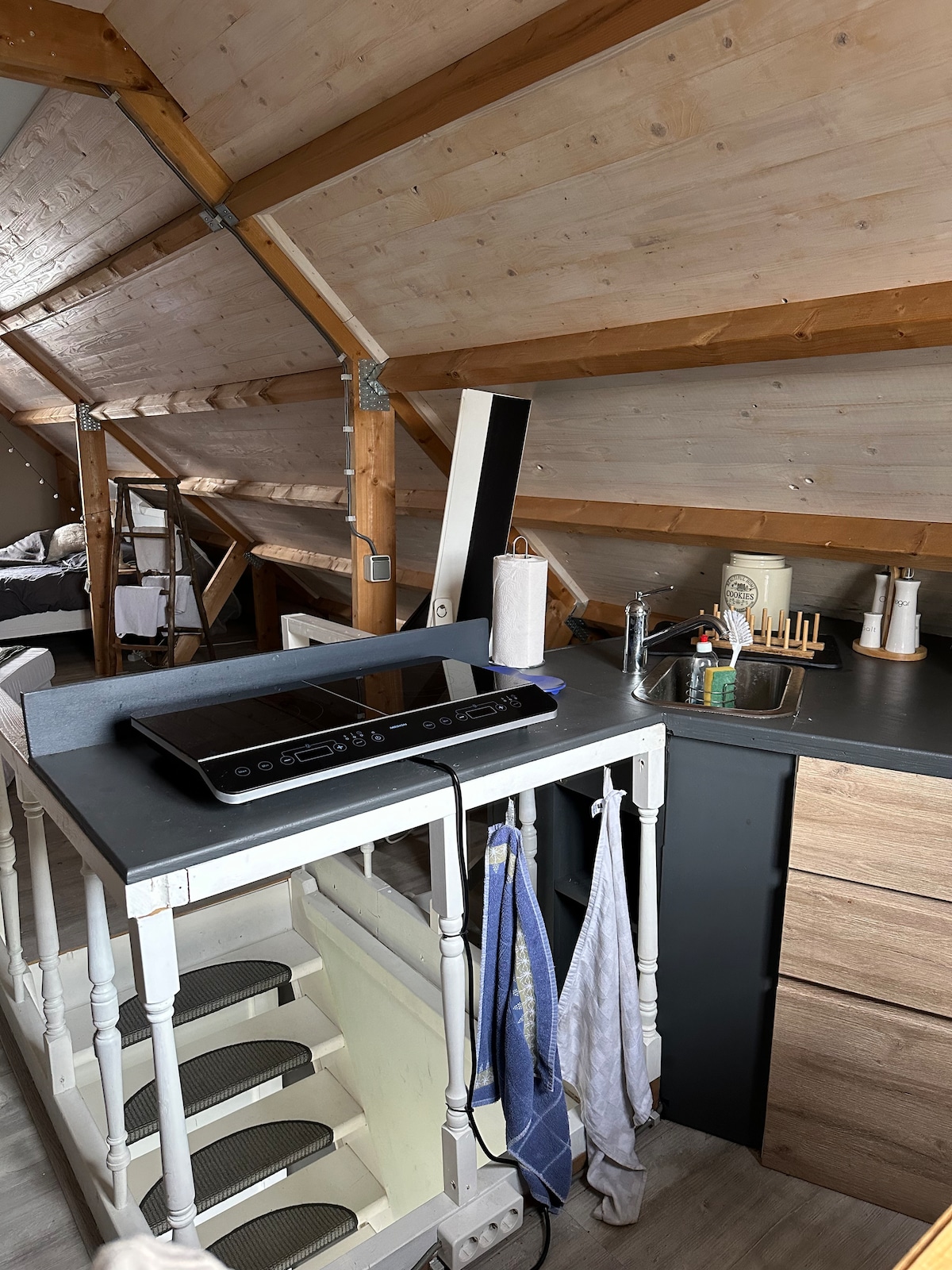 Is aoi thú in Nieuwendijk/Goudswaard in aice le hoileán Tiengemeten. Fanfaidh tú i dteachín scoite sa ghairdín, ag breathnú amach ar an ngairdín agus ar an tuath. Tá an teachín do bheirt (is féidir leaba champála do pháiste a úsáid). Tá cistinéad ann inar féidir leat bia a ullmhú. Tá cuisneoir, leaba dhúbailte, seomra folctha agus áit shuíocháin theolaí ann freisin. Chomh maith leis sin sa ghairdín tá ardán taitneamhach agus go leor spáis agat. Más gá, is féidir leat an sabhna agus an tobán te 32.50 in aghaidh an lae a chur in áirithe.(dhá lá ar a laghad)