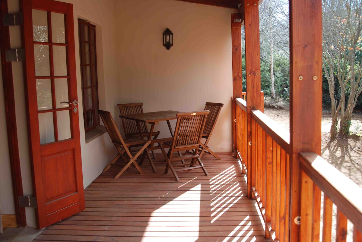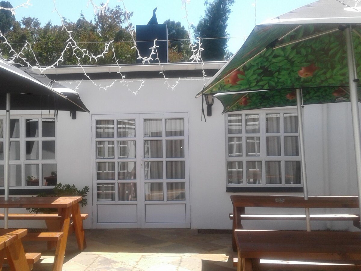 Lig do scíth leis an teaghlach ar fad ag an áit shíochánta seo nó bain sult as saoire ghearr rómánsúil agus bí caillte inár ngairdíní foirmiúla iontacha. Tá an teachín 6 sheomra codlata seo (2 bhanríon agus 1 leaba dhúbailte) le háiseanna féinfhreastail lánfheistithe agus rochtain iomlán ar cheann de na gairdíní is fearr in Hogsback. Táimid oiriúnach do pheataí agus do pháistí le háitreabh sábháilte. Tá an t - eispéireas príobháideach agus tugann sé deis duit féin, do theaghlach agus do chairde suaimhneas a fháil i measc éiníní agus crainn mhéithe.