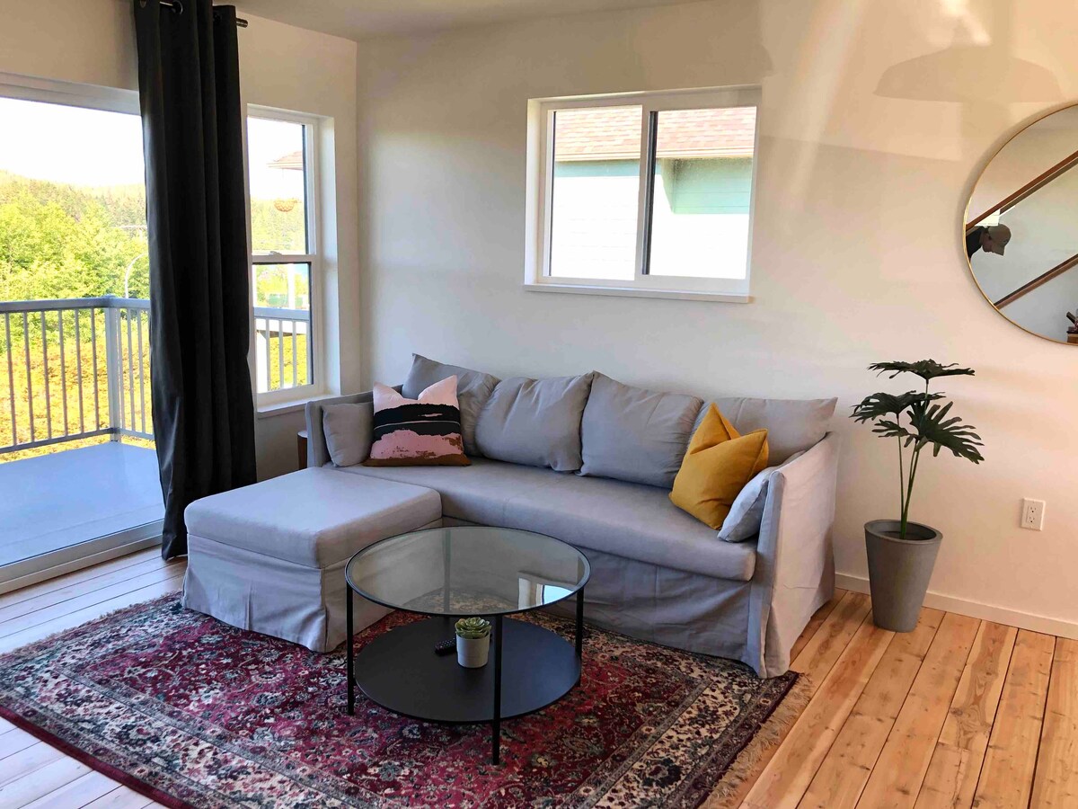 Anseo beidh tú in ann do scíth a ligean, taitneamh a bhaint as an seomra suí cluthar geal le síleálacha boghtacha. Cistin lánfheistithe. Tá an teach suite i gcomharsanacht díreach taobh amuigh den mhórbhealach. Siúlóid ghearr nó rothar isteach sa bhaile mór. Is é Port Hardy an baile leis an rochtain is gaire do Holberg agus Cape Scott. Tiomáint 15 nóiméad chuig Trá Storey. 1.5 uair an chloig tiomáint chuig ceann rian Cape Scott/San Josef Bay. Nóta: is é seo an teach do dhá chat nach mbeidh sa spás le linn d'fhanachta. Tá siad ina gcónaí sa svuít íoslaigh.