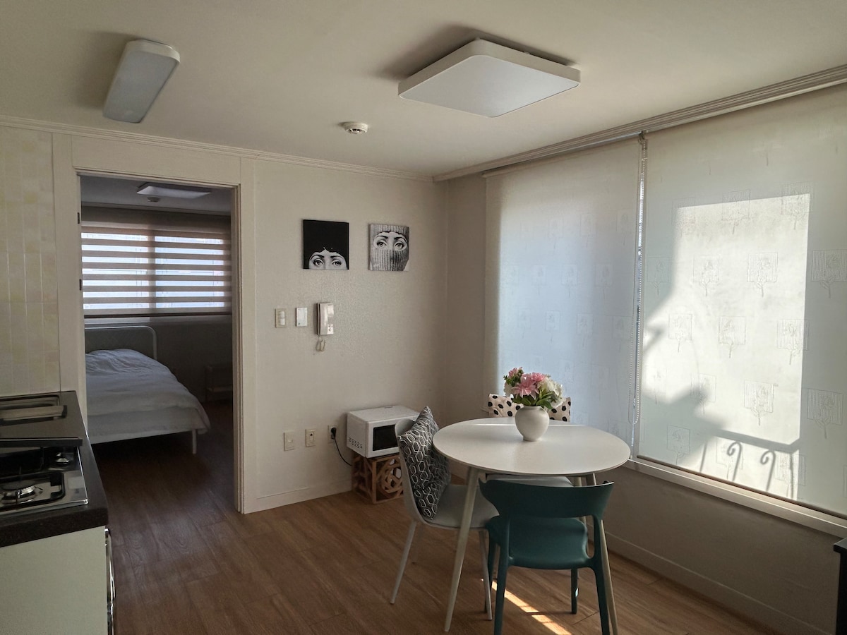 "NORMAL THINGS" are against the normality of daily. I want to provide a comfortable unfamiliarity through this place filled with ordinary things that can be easily seen in everyday life. During the day, feel the cool breeze and warm sunlight coming through the big window. in the evening, relax listening to your favorite music. Check in: 3 pm Check out: 11 am Recommend a reservation for 2 people. (Double bed room setting, 2 beds not available) 3 people: Bedding set on sofa bed in small room
