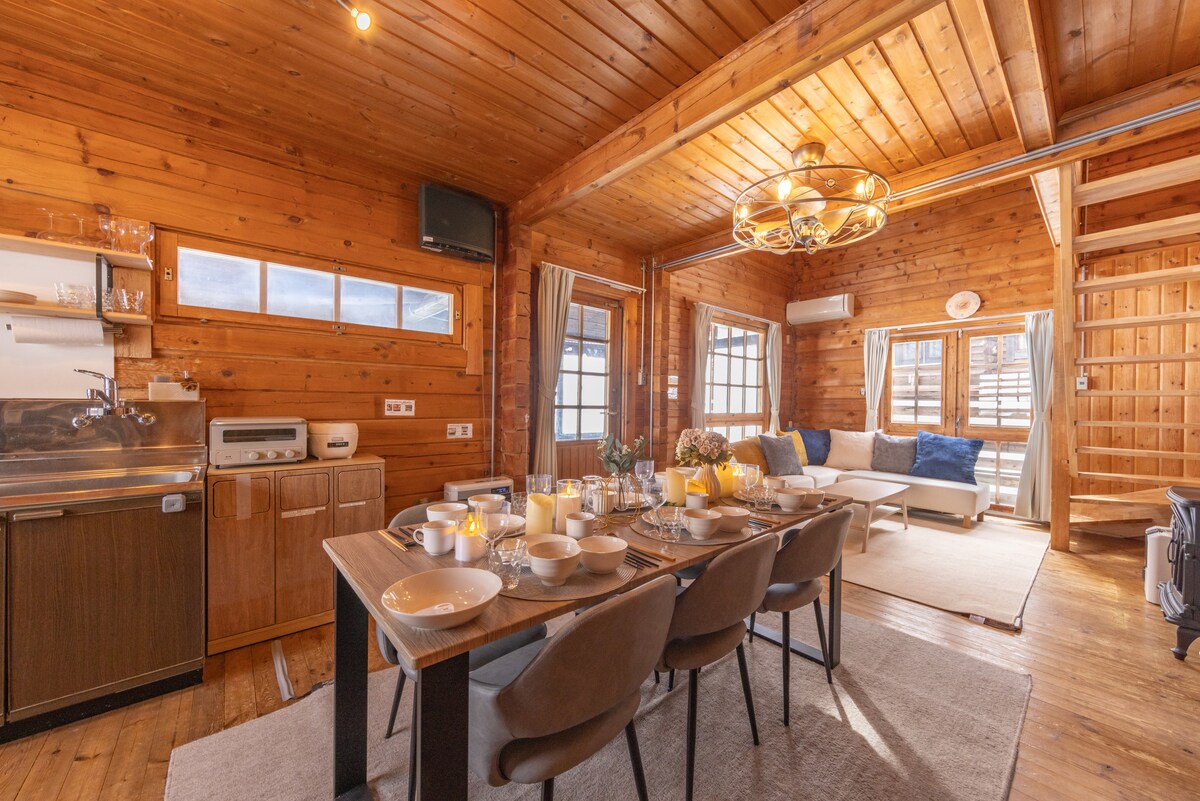 Tá Kuri Chalet oiriúnach do lánúin nó do theaghlach de cheathrar. Lonnaithe idir ionaid saoire sciála Suginohara & Ikenotaira. Tugann limistéar an phlean oscailte ar an dara hurlár, rochtain ar limistéar an tseomra isteach, ar an gcistin, ar an áit itheacháin agus ar an seomra suí agus ar an seomra folctha thíos staighre. Agus é thuas staighre tá dhá sheomra traidisiúnta de Stíl na Seapáine ar leith. Inrochtana go héasca i gcarr go 4 cinn de na hionaid sciála áitiúla. Moltar do gach carr tiomána rotha an leas is fearr a bhaint as do chuairt, tá páirceáil ar fáil.