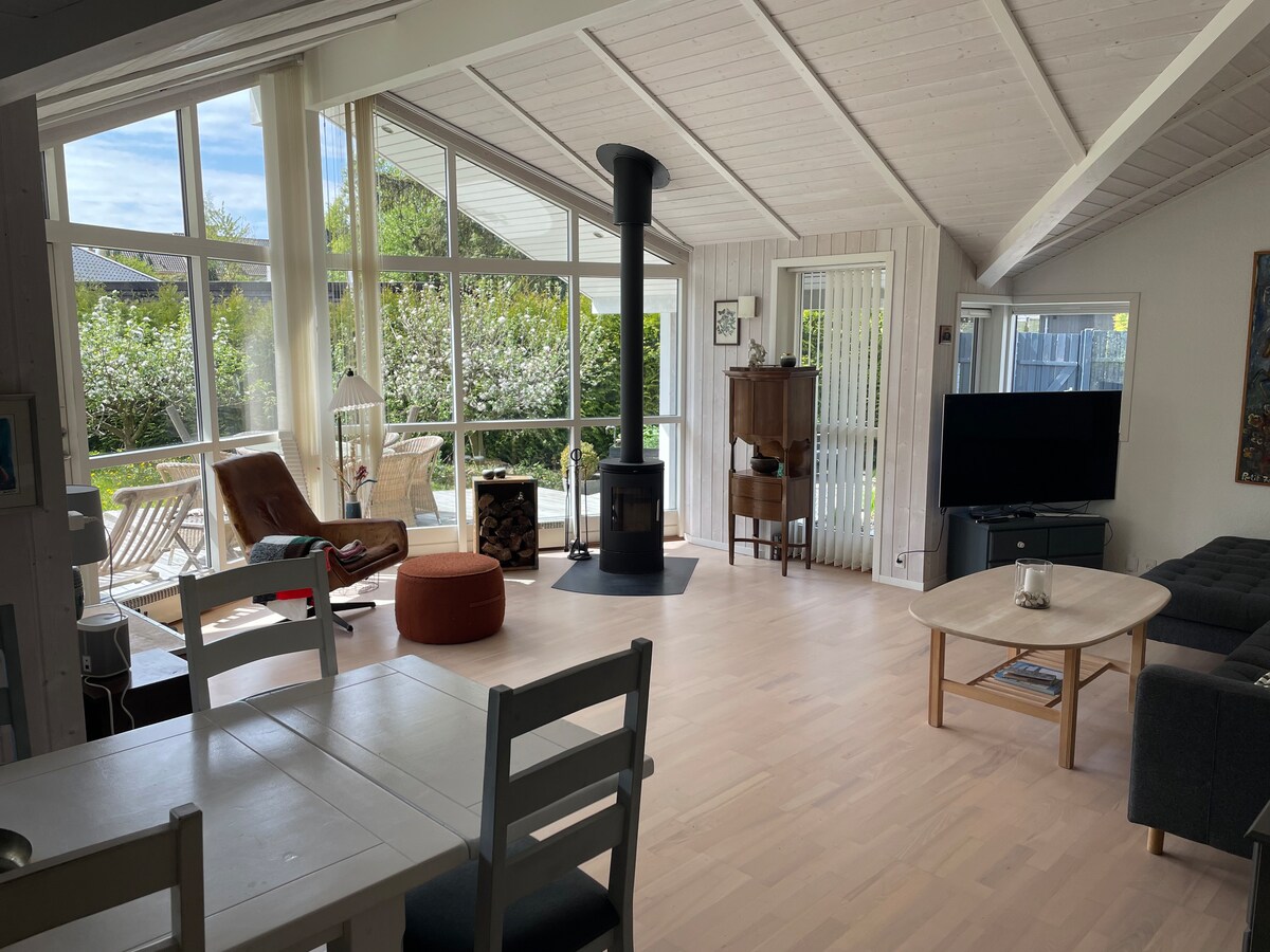 Teachín galánta ina bhfuil spás don teaghlach ar fad gar do chathair, foraois agus trá Hornbæk. 3 sheomra leapa, 2 sheomra folctha (leithreas + cithfholcadán). Cistin, seomra bia agus seomra suí ina bhfuil sorn dóite adhmaid chomh maith le teaschaidéal/aircon. Tá ardán álainn sa teach ina bhfuil áit itheacháin (agus beárbaiciú), limistéar tolglainne ina bhfuil lampaí teasa, trampailín agus gairdín ina bhfuil an ghrian an lá ar fad. Bain sult as do shaoire i suíomh ciúin. Foirfe do lánúineacha iomadúla nó don teaghlach mór.