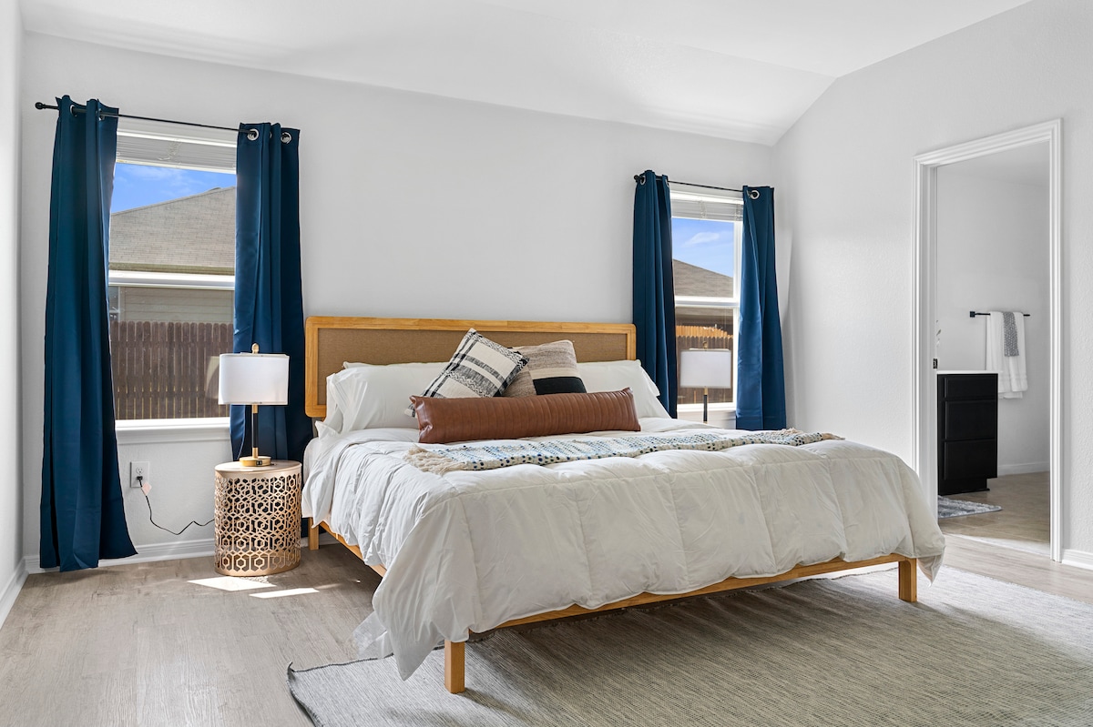 Tá an teach nua - chóirithe seo suite in Manor Texas. Táimid timpeall 20 -30 nóiméad go lár bhaile Austin ag brath ar an trácht agus díreach 15 nóiméad go dtí an tAerfort. Do ceart díreach taobh amuigh de na hustle agus bustle de Austin, ach gar go leor chun cuairt a thabhairt agus taitneamh a bhaint as go léir! Tá ceithre sheomra leapa ar leith againn sa teach agus dhá sheomra folctha iomlána. Rinneadh athchóiriú iomlán ar an teach i dtús 2022. Úsáidtear an garáiste le haghaidh stórála agus ní bheifear in ann rochtain a fháil air le linn d'fhanachta.