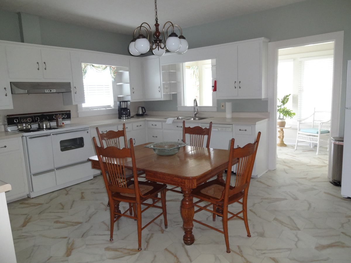 Tá an teach feirme 1,100 SF seo oscailte agus fairsing - timpeallaithe ag an dúlra le radhairc áille. Ná bíodh iontas ort má fheiceann tú fianna, turcaithe fiáine, coiníní, agus cuileoga dóiteáin! An - chompordach agus scíth a ligean laistigh agus amach. Tá deic mhealltach ann chun taitneamh a bhaint as cupán caife nó gloine fíona cois tine. Chomh maith leis sin, teallach teolaí gáis taobh istigh! Ní cheadaítear tobac. Idirlíon ardluais den scoth. Níl earraí gáis agus earraí grósaera ach 7 -15 nóiméad ar shiúl. Leaba bhanríona amháin agus 2 chúpla iniompartha más gá.