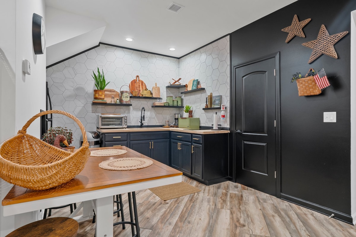 Lig do scíth leis an teaghlach ar fad ag an áit shuaimhneach seo le fanacht. Déan iniúchadh ar Pháirc Náisiúnta Mhamoth Cave, cadhc an Abhainn Ghlas nó téigh ag siúl trí Dinoworld agus ansin lig do scíth sa tobán te agus na páistí nó an PUP ag seinm sa chlós cúil fálaithe. Is áit iontach é an poll dóiteáin dos'amores. Bain sult as béile a roinnt sa chistin ina bhfuil go leor soláthairtí nó téigh síos an tsráid agus tóg píotsa agus uachtar reoite ó na siopaí faoi úinéireacht áitiúil i gCathair na hUaimhe. Is breá linn spásanna a dhéanamh duit chun cuimhní cinn a chruthú. @mammothcavecottage