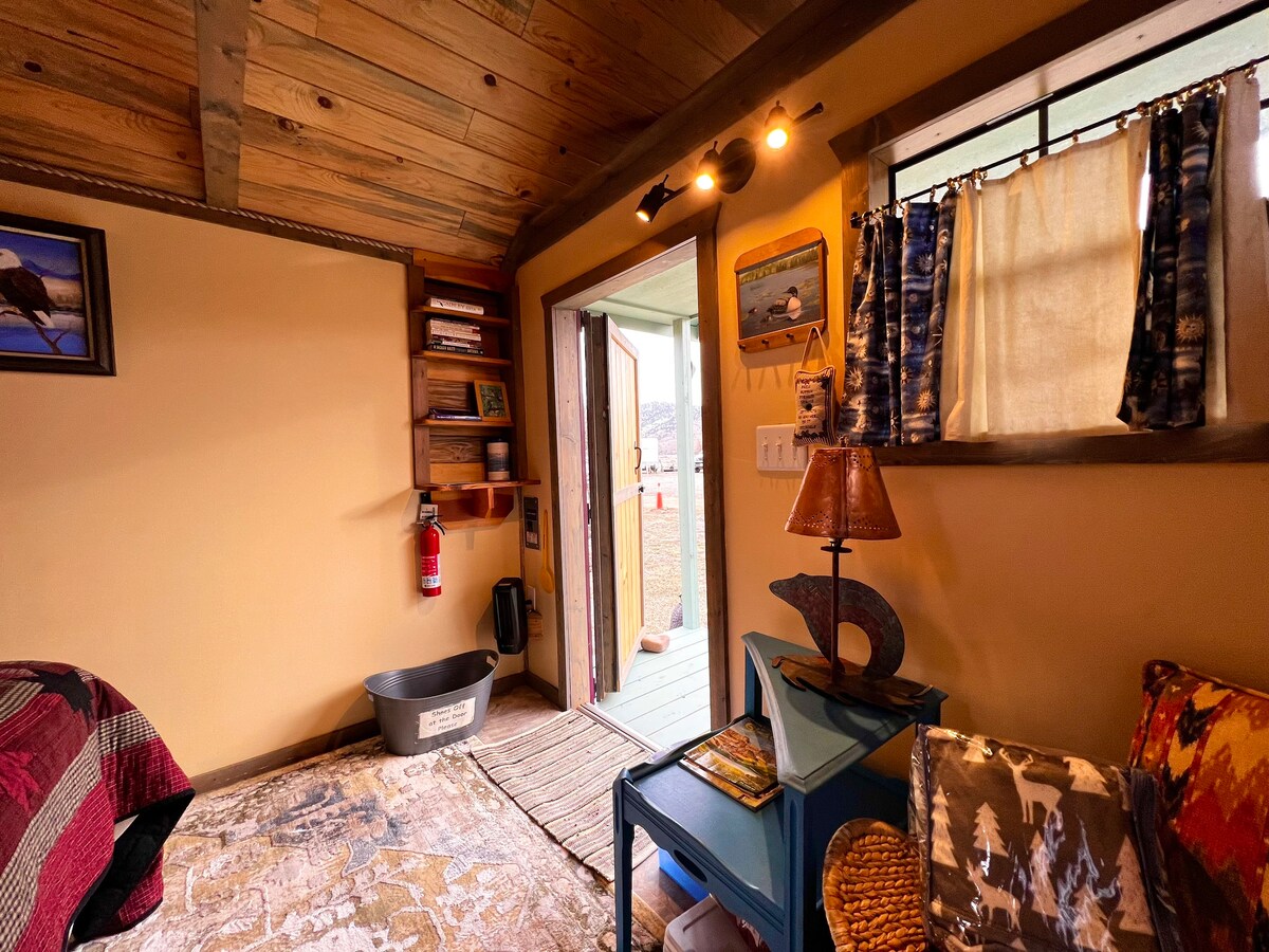 Faigh blaiseadh den chábán beag uathúil seo lasmuigh den chosán buailte atá suite i measc na bpéin agus an tsaoi i mbaile tuaithe Hot Springs Montana le folcadáin mhianraí the in aice láimhe agus ceantar gleoite i lár na cathrach. Siúil go dtí na fuaráin the agus i lár an bhaile i gceann 5 nóiméad! Cuireann an t - óstach taithí ar ionad apothecary agus reifléacseolaíochta ar fáil chomh maith le háit itheacháin i measc na gcrann aitil.