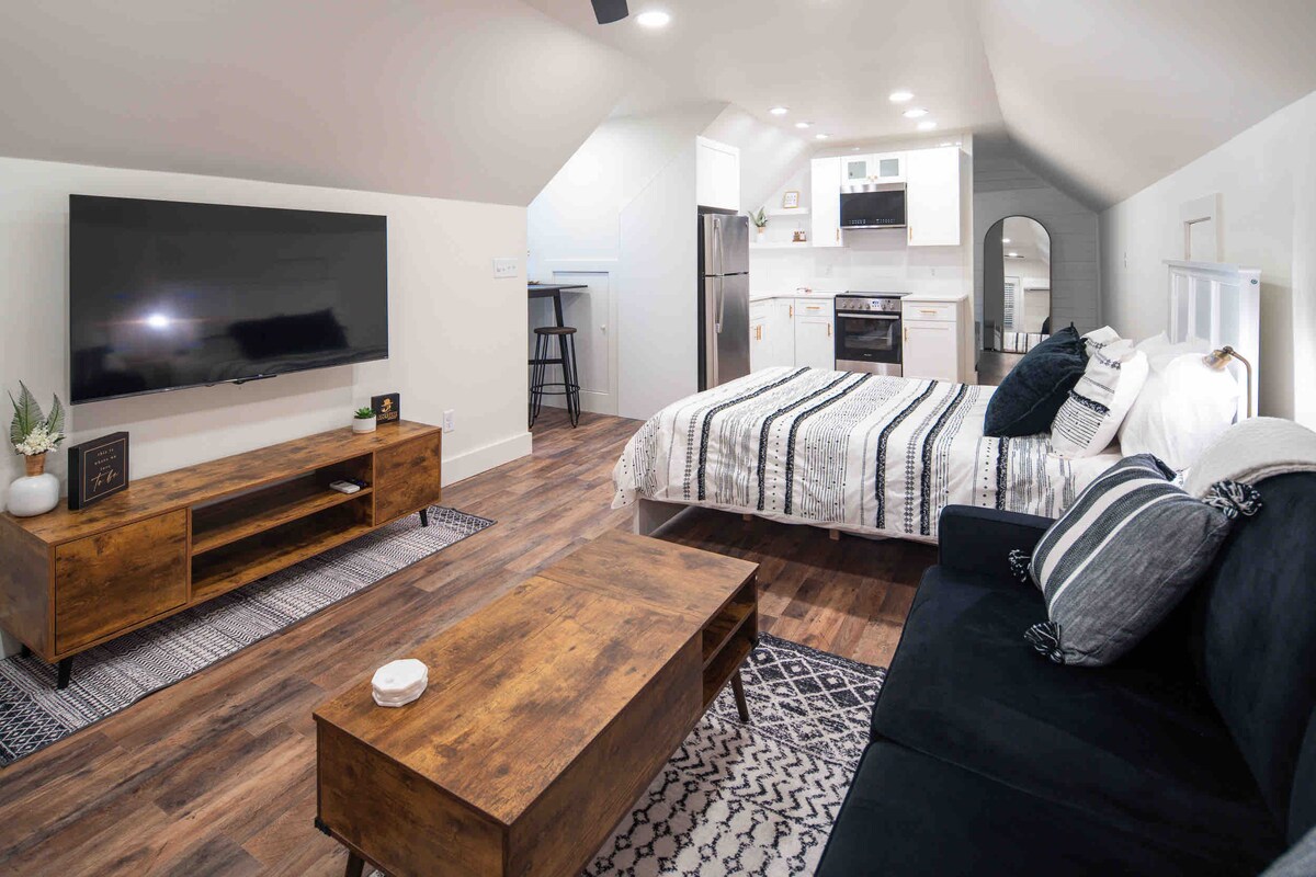 Óstan uirbeach ar King St! Páirceáil do charr ag ár stiúideo atá athchóirithe go hiomlán díreach ar imeall an bhaile agus bain sult as turas insiúlta chuig gach rud atá le tairiscint ag Boone. Is áit fhoirfe é do chluiche peile App State, do chomhdháil nó do cheolchoirm ar an gcampas, do thuras gnó, nó do shaoire ghearr rómánsúil deireadh seachtaine. Tá na siopaí agus na bialanna go léir is fearr leat i lár na cathrach céim ar shiúl. Níl ach dornán lóistíní príobháideacha ar chíos gearrthéarmach i lár an bhaile, mar sin ná lig don deis uathúil seo imeacht!