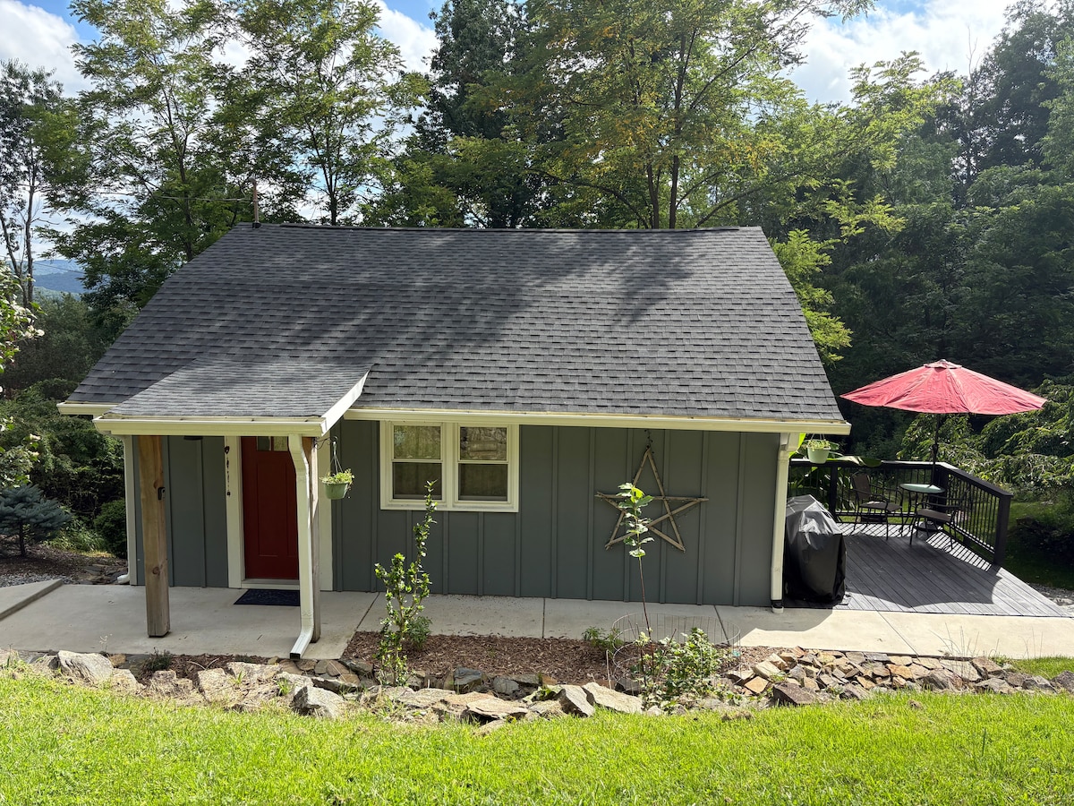 Ar shliabh Howard's Knob, síochánta, spreagúil agus cruthaitheach, tá gach rud a bheidh uait le haghaidh laethanta saoire sléibhe athnuachana inár dteachín teolaí nua - athchóirithe. 624 troigh chearnach, 2 sheomra leapa. Cistin. Deic. Páirceáil phríobháideach do 3-4 charr. Níos lú ná míle chuig siopadóireacht agus bia ar Shráid an Rí i gcampas Downtown Boone agus ASU. 1 mhíle ó Howard's Knob peak & County Park. Wi-fi agus teilifís i ngach seomra leapa agus sa seomra suí. Seinnteoir DVD, seinnteoir dlúthdhiosca, seinnteoir ceirníní freisin - go leor le feiceáil agus le cloisteáil!