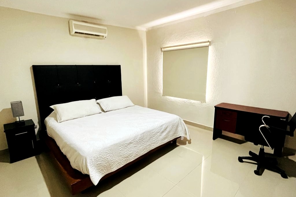 Podemos facturar su estancia. Traslado disponible al aeropuerto, tren, barco o autobuses de la ciudad a precio de Uber (solicite mas información al reservar). La tranquilidad se respira en ésta cómoda y funcional casa para 4 - 6 personas en 2 camas + 1 colchón de aire, cochera privada, ubicada en un circuito semi privado, con parque frente a la puerta. Ideal para estancias familiares con niños, de trabajo o para descanso. Comodidad, buena ubicación y tranquilidad en su visita a Los Mochis.