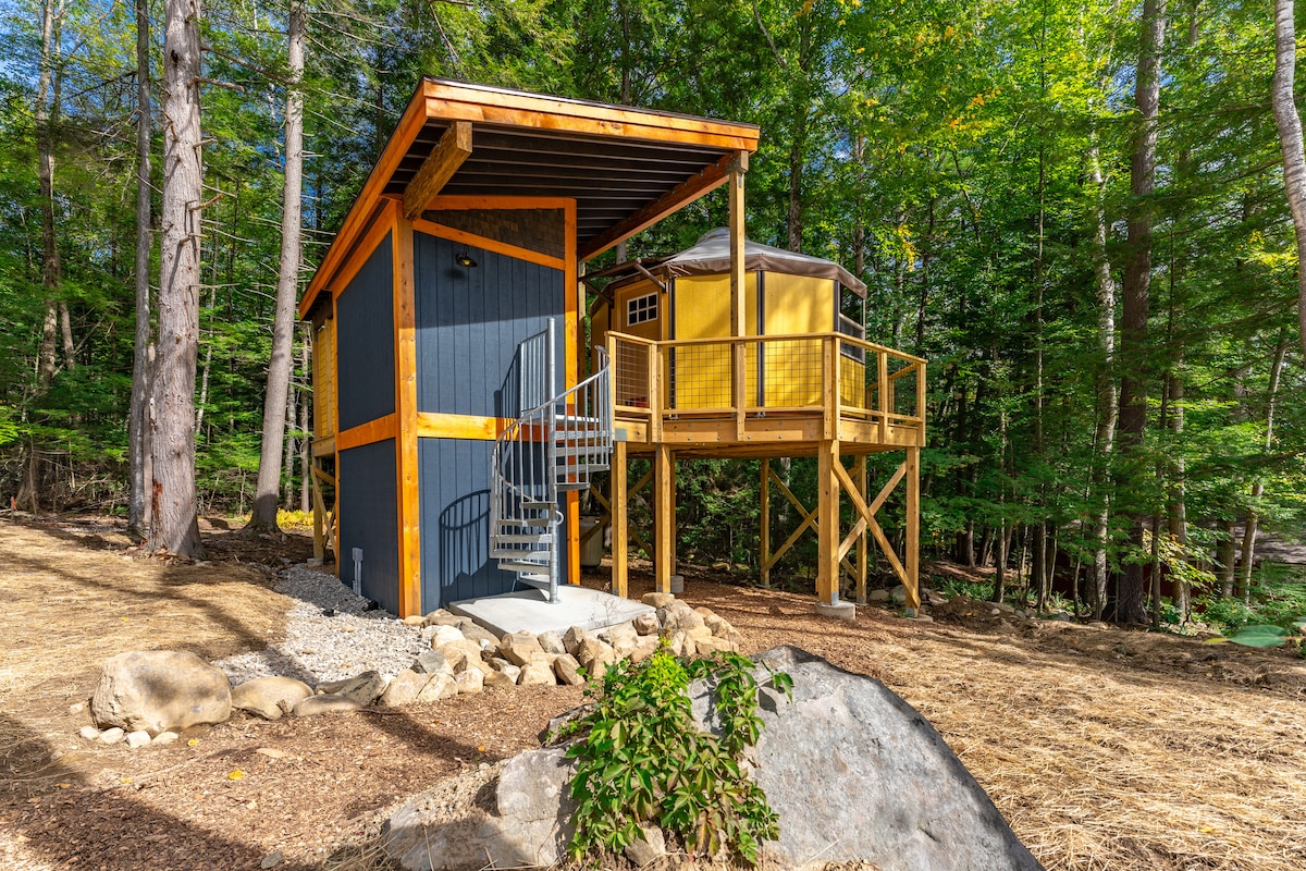 Is taisce i bhfolach é an Yurt ag Mt Snow más mian leat scíth a ligean i bpríobháideacht le radharc iontach. Téigh trí chruinneachán an yurt ag bairr an chrainn, na réaltaí agus an ghealach, agus múscail éirí fairsing gréine thar na Sléibhte Glasa. Bain sult as manglaim ar an deic le treetop agus radhairc sléibhe. Breathnú ag am ar bith den bhliain, ar chúiseanna éagsúla! Príobháideach ach suite go háisiúil, níl an réadmhaoin ach turas gearr chuig Mt Snow (9 nóiméad) agus Wilmington (15 nóiméad).