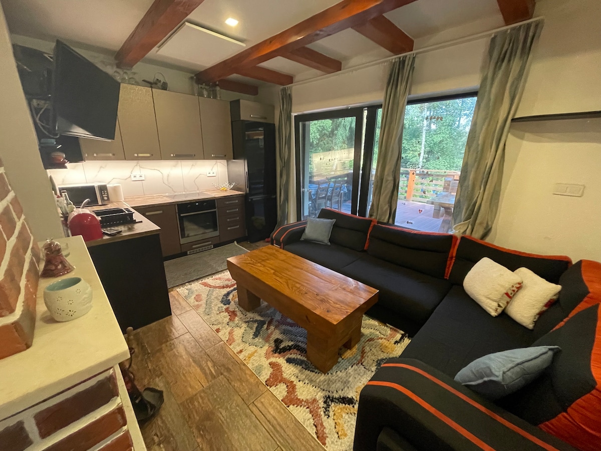Tá ardán mór deas sa teachín (gríoscán, cauldron). San fhoirgneamh nua tá seomra suí mór ceangailte leis an gcistin (oigheann, sorn, sorn, sorn, micreathonnán, citeal, citeal, cuisneoir, cuisneoir, miasniteoir, miasniteoir, meaisín níocháin,srl.). Tá seomra leapa agus seomra folctha ceangailte leis an leithreas ar an mbunurlár. Thuas staighre tá leithreas agus dhá sheomra leapa mhóra (tá balcóin ag an dá sheomra leapa). Is é 9 leaba an toilleadh iomlán. Tá téamh daingnithe le teallach agus le painéil infridhearg i ngach seomra. Tá an timpeallacht ina bhfuil an teachín suite oiriúnach le haghaidh scíthe, síochána agus siúlóidí fada.