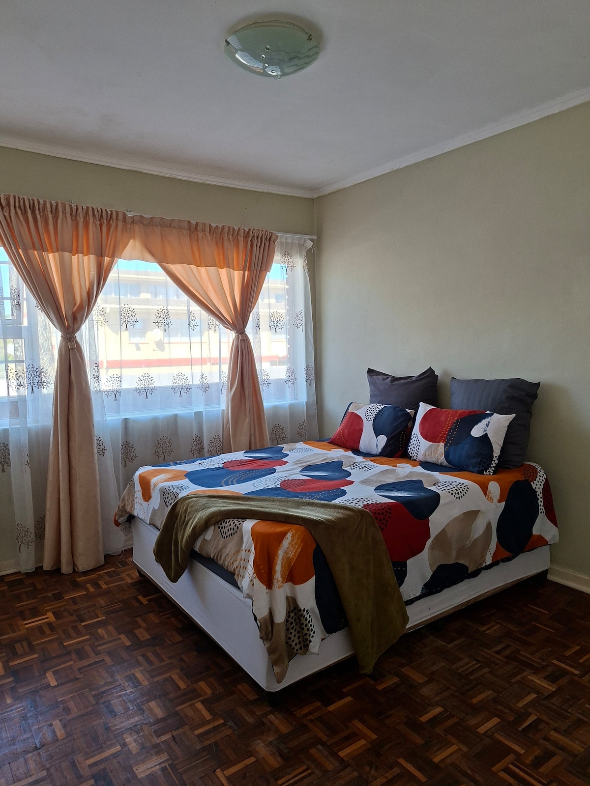 Tá an t - árasán seo i gcoimpléasc slán ina bhfuil 3 sheomra leapa, 2 sheomra folctha, agus cistin, bia agus áit suí plean oscailte. Tá leaba rí, agus seomra folctha en - suite sa 1ú seomra leapa. Tá leaba bhanríona sa 2ú agus sa 3ú seomra leapa agus roinneann siad seomra folctha. TABHAIR DO D'AIRE, LE DO THOIL: Bí cinnte go síneoidh tú cód iompair, le do thoil Níl aon Pháirtithe ann Teastaíonn éarlais in - aisíoctha ar theacht duit (R2000) Ní cheadaítear aon aíonna neamhchláraithe. Bíodh meas agat ar an gcuriarracht torainn. (gan torann i ndiaidh 9pm) Tabhaíonn eochracha caillte táille athsholáthair.