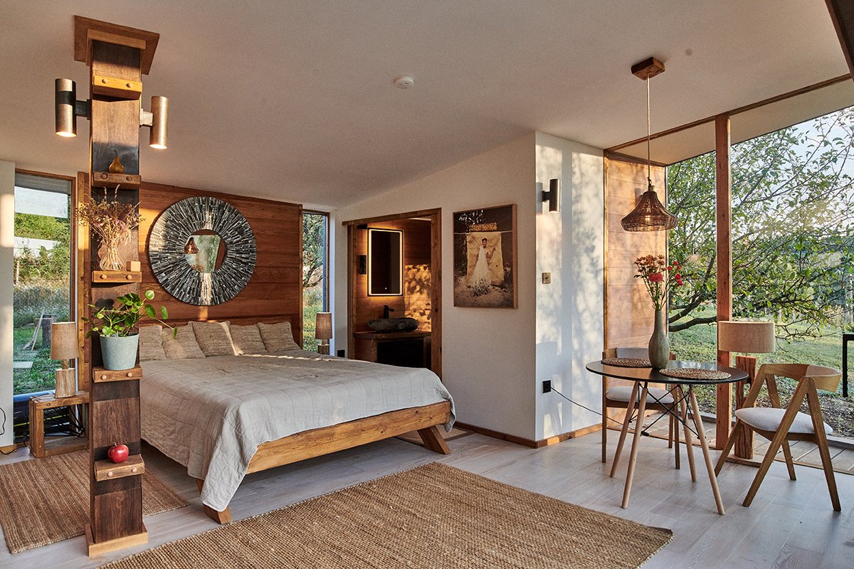 An áit ina mbeidh an fhoraois mar do theach. Tóg go héasca é ag an saoire ghearr uathúil shuaimhneach seo. Chomh maith le hailtireacht atá neamhdhíobhálach don chomhshaol, cuirimid fáilte roimh dhuine ar bith atá ag iarraidh taitneamh a bhaint as ciúnas Fhoraois Bakony i dtimpeallacht nua - aimseartha le taobh istigh uathúil agus troscán deartha compordach. Sa gheimhreadh agus sa samhradh, is eispéireas draíochtúil é faoin spéir stáiriúil, agus é fillte i bpiliúr uisce chun seaimpéin a ól sa linn snámha deas , suathaireachta uisce deas te.