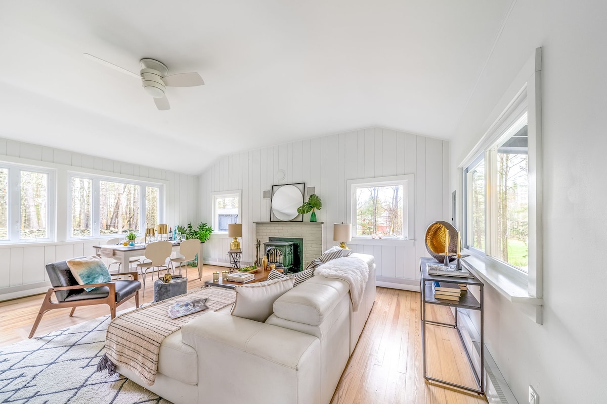 Le feiceáil le déanaí in Vogue mar cheann de “The Best Airbnbs in Upstate New York for a Weekend Away From the City” - A cluthar getaway upstate ar 2 acra de thalamh álainn Catskill. Níl sé ach 8 nóiméad go Woodstock, 5 nóiméad go sráidbhaile Saugerties, agus tá fánaíocht, sciáil agus snámh ann laistigh de nóiméad. Rinneadh athchóiriú nua ar an dara hurlár iomlán lena n - áirítear an seomra folctha agus an dá sheomra leapa. Is leagan amach oscailte é an chéad urlár ina bhfuil cistin, áiteanna maireachtála agus áiteanna itheacháin a théann chuig an deic chúlchlós.