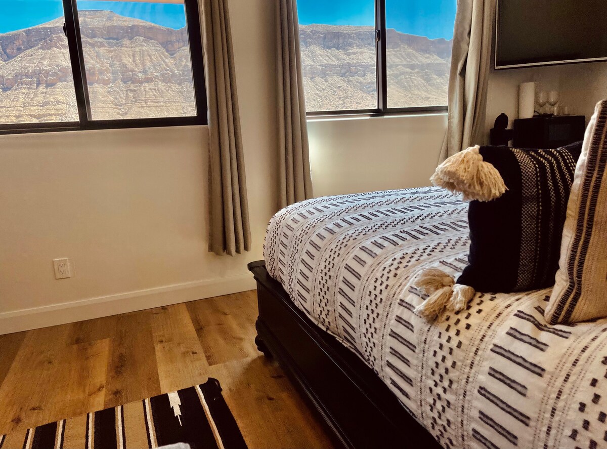 Téigh siar agus lig do scíth ag an svuít shuaimhneach nuathógtha seo d'aíonna ina bhfuil tobán te príobháideach faoi iamh agus áit suí. Díreach nóiméad ar shiúl ó bhialanna agus ó shiopadóireacht gheobhaidh tú socracht agus radhairc iontacha. Agus tú timpeallaithe ag na cúrsaí gailf is fearr i nDeisceart Utah, níl tú ach 30 nóiméad ar shiúl ó Pháirc Náisiúnta Zion. 5 nóiméad ó Sand Hollow State Park & Sand Hollow Reservoir.