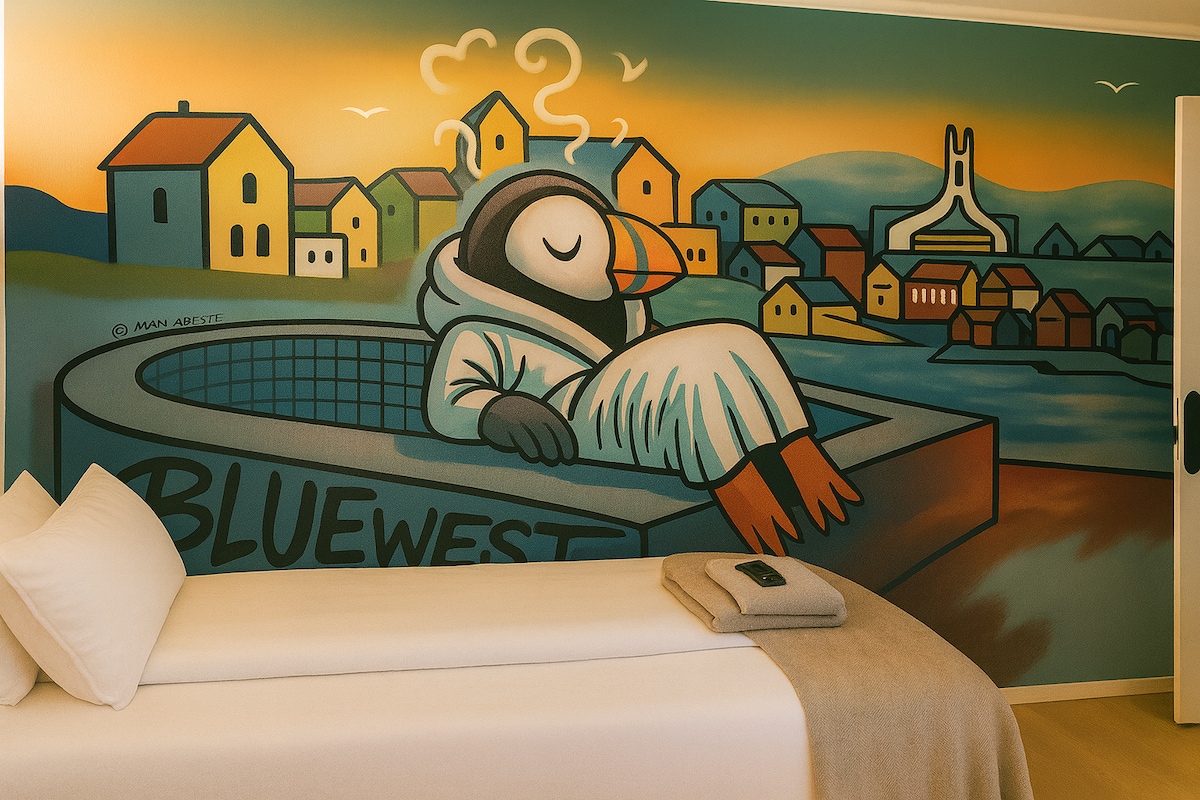 Seomra geal le dhá leaba shingil, seomra folctha príobháideach agus bricfeasta buifé san áireamh in óstán ealaíne ildaite i gcroílár Stykkishólmur. Siúil chuig an gcuan, bialanna agus bád farantóireachta Baldur i gceann cúpla nóiméad, ansin tar ar ais chuig Wi-Fi tapa, páirceáil saor in aisce agus seomra ciúin. Cruthaíonn múrphictiúir agus scéalta áitiúla “beagnach fíor” ar na ballaí bonn spraíúil do chairde, do shiblíní nó do chomhghleacaithe atá ag taisteal ar bhóthar ar leithinis Snæfellsnes nó ag dul go dtí Westfjords. Le féinseiceáil isteach, tá sé éasca teacht go déanach.
