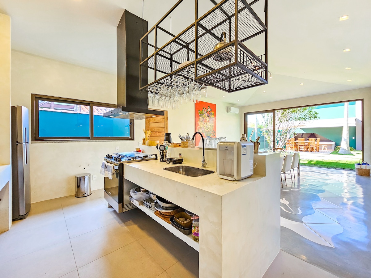 Teach brionglóideach le radharc faoi phribhléid ar an bhfarraige + LINN SNÁMHA phríobháideach do suas le 5 dhuine. Lonnaithe in Pontal do Atalaia in Arraial do Cabo, tá lóistín UATHÚIL ar fáil inár dteach. Viva an phribhléid a bhaineann le bheith in aice leis NA tránna IS ÁILLE DE ARRAIAL DO CABO, tá sé 6 nóiméad sa charr ón Prainhas do Pontal, nó más mian leat siúl (30 nóiméad) Tiomáint 13 nóiméad go Praia Grande nó Praia dos Anjos 10 nóiméad ó Mirante chun féachaint ar luí na gréine TEACH AN - TEOLAÍ do suas le 5 dhuine
