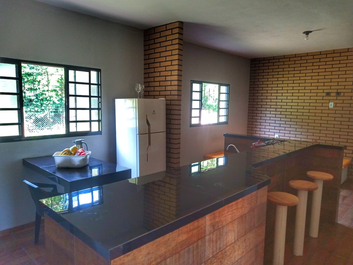 Rancho nuathógtha in Ilha Solteira. Tá sé suite i Praia Catarina, cúig nóiméad ón lár agus 3 nóiméad ar shiúl go dtí an trá agus an abhainn. Bialanna maithe in aice láimhe agus rochtain éasca ar réigiúin eile. Aerchóiriú i ngach seomra!