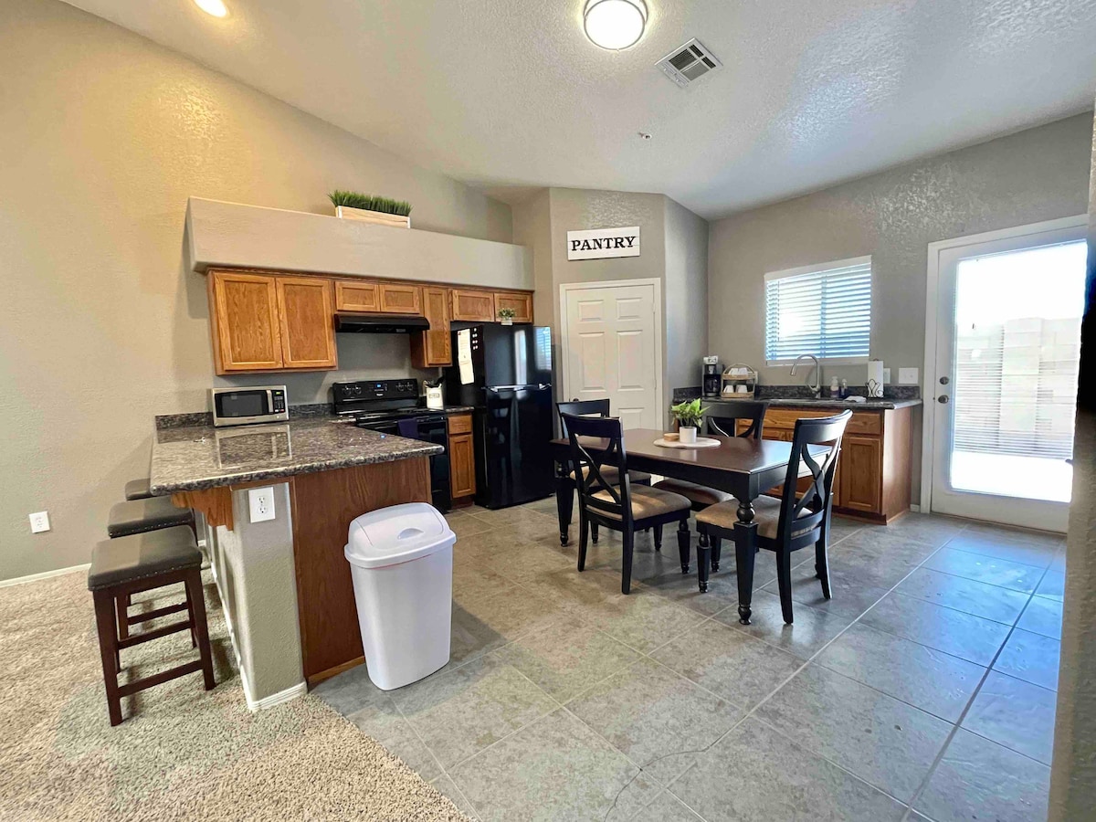 Tabhair an teaghlach ar fad chuig an áit iontach seo ina bhfuil go leor spáis le haghaidh spraoi. Tá an baile mór seo suite i gcomharsanacht nua in Yuma. Is teach fairsing nuathógtha é seo a maisíodh chun go mbeidh sé ina bhaile beag duit agus tú as baile . Suite go háisiúil in aice le Walmart agus siopaí. Táimid suite gar do mheall pailmeacha Yuma áit a bhfuil go leor áiteanna le hithe, le siopadóireacht agus le siamsaíocht. Tá an teach feistithe le gach rud a theastaíonn uait chun a chinntiú go bhfuil an fanacht is fearr agat agus tú as baile.