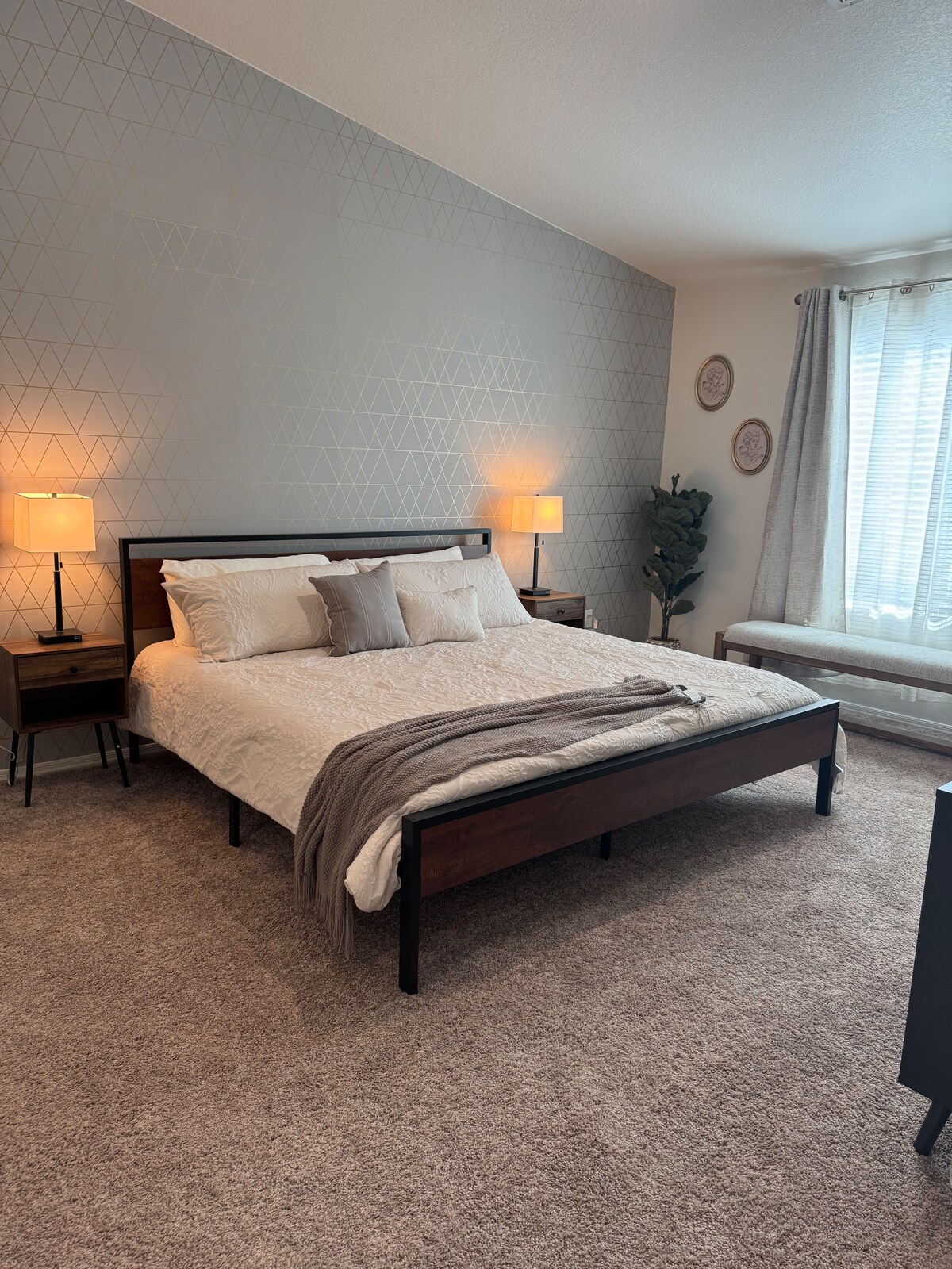 Teach baile mór thar a bheith glan atá suite ar chomharsanacht chiúin; troscán comhaimseartha agus leapacha ardchaighdeáin; garáiste príobháideach clúdaithe agus áisiúlacht meaisín níocháin/triomadóra taobh istigh den teach. Cúlchlós beag príobháideach freisin. In aice le Walmart (1.8 míle) agus bialanna. Tá garáiste ar fáil ach ní fheilfidh sé níos faide/níos airde ná gnáthfheithiclí amhail bailiú fada agus arda/SUVanna. Tá an garáiste 17 dtroithe ar doimhneacht ag 6'7 dtroithe/79 n - orlach ar airde (doras an gharáiste). Ní chuirtear stopalláin tobáin ar fáil, tá sé beartaithe tobáin a úsáid mar chithfholcadáin amháin.