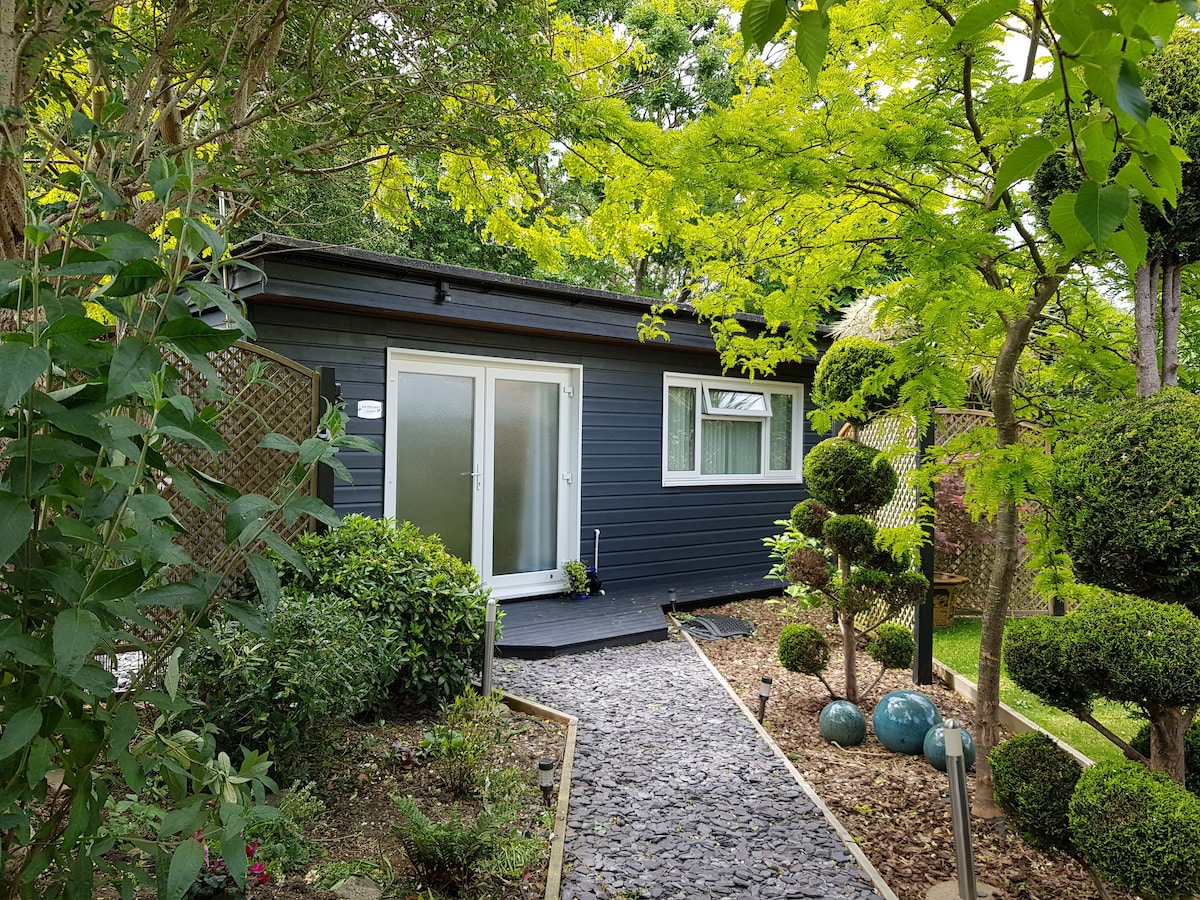 Foirgneamh beag bídeach, gleoite, adhmaid frámaithe, ceann tuí i ngairdín tosaigh an úinéara, a thairgeann fanacht rómánsúil le príobháideacht iomlán do bheirt. Leaba ar mhéid rí móide cithfholcadán agus leithreas en - suite, teilifís, micreathonnán, mionchuisneoir le bricfeasta, tae, caife agus Wi - Fi saor in aisce. Is áit thar a bheith síochánta é le fanacht - tá sé ina chodladh go dtí an hoot na n - ulchabhán agus a bheith dúisithe ag amhrán na n - éan. Tá sé suite i sráidbhaile beag Sasanach Elsworth, 8 míle ó Cambridge.