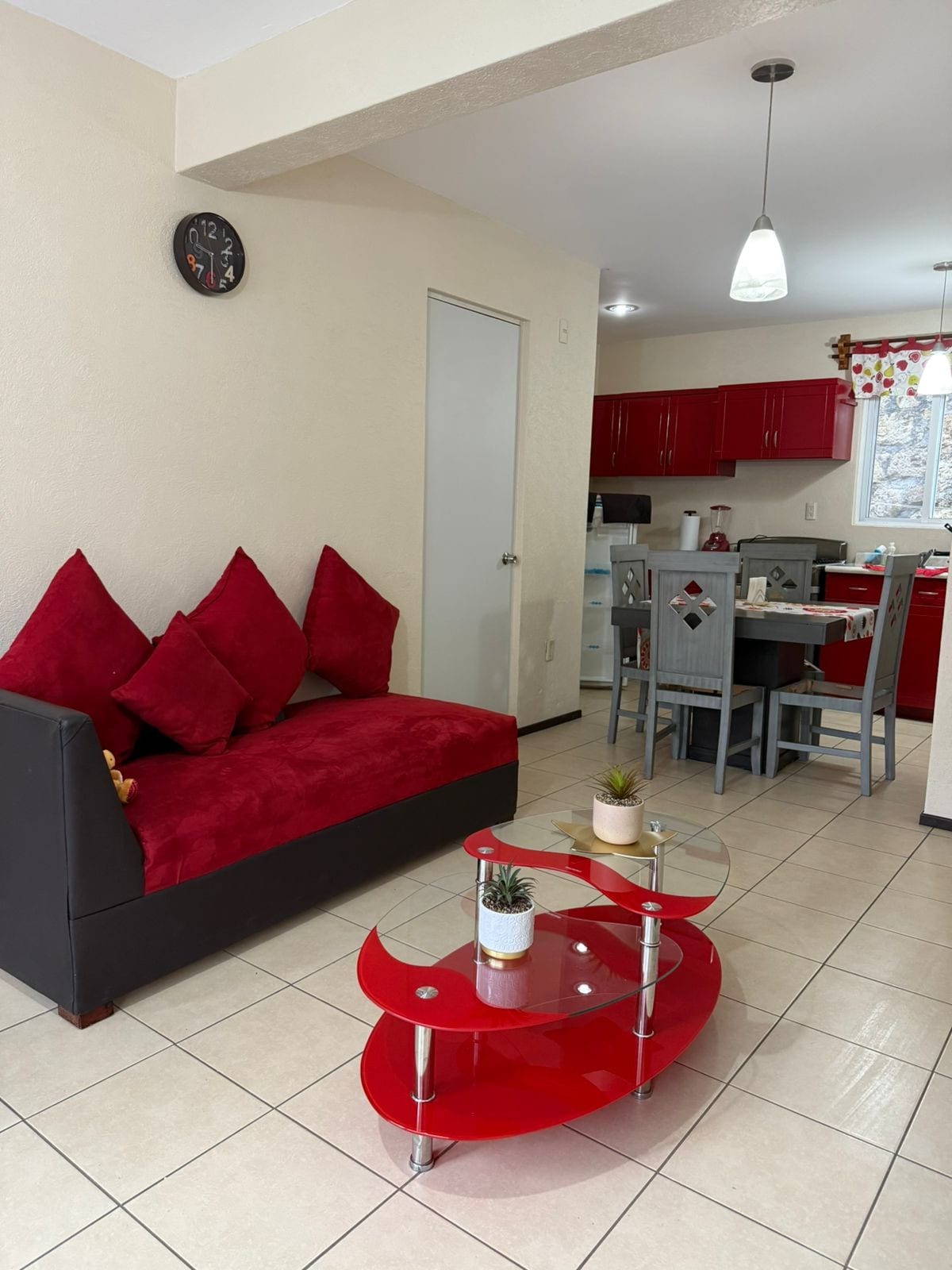 Árasán atá oiriúnach do shaoire, d'obair nó do chuairteanna leighis. Lonnaithe in Jardines de la Aldea IV, i bpríobháideach slán, gar do Ciudad Industrial, Ciudad Salud, Corp Liverpool, CEDIS . Díreach 20 nóiméad ó Centro de Morelia, 15 nóiméad ó phríomhospidéil (IMSS Charo, ISSSTE, Civil, Children) agus 22 nóiméad ón Ionad Comhdhála. Feistithe: Cistin le soláthairtí bunúsacha cócaireachta, cumascóir, micreathonnán, déantóir caife, meaisín níocháin, uisce te agus 2 theilifíseán. An dara hurlár, compordach agus feidhmiúil. Sonrasc ar fáil