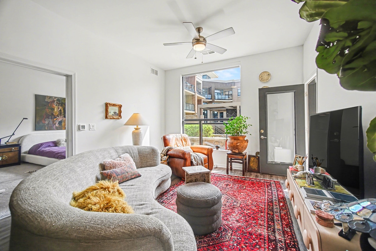 Árasán glan agus áisiúil 1 seomra leapa. 20 nóiméad ón Aerfort & 8.7 míle go dtí an Staidiam. Lonnaithe i bpobal bríomhar, cruthaitheach agus éagsúil Mhargadh na hAbhann le rochtain ar go leor nithe is díol spéise agus áiteanna siamsaíochta in Kansas City. Tóg an carr sráide saor in aisce chuig Union Station, Crossroads, Power & Light District/T - Mobile Center, Convention Center agus go leor eile. Tá rochtain ar linn snámha agus ar ionad aclaíochta i d'fhanacht, chomh maith le clós ar an díon pobail ina bhfuil radhairc spéirlíne. Dún an sacar KC Reatha.