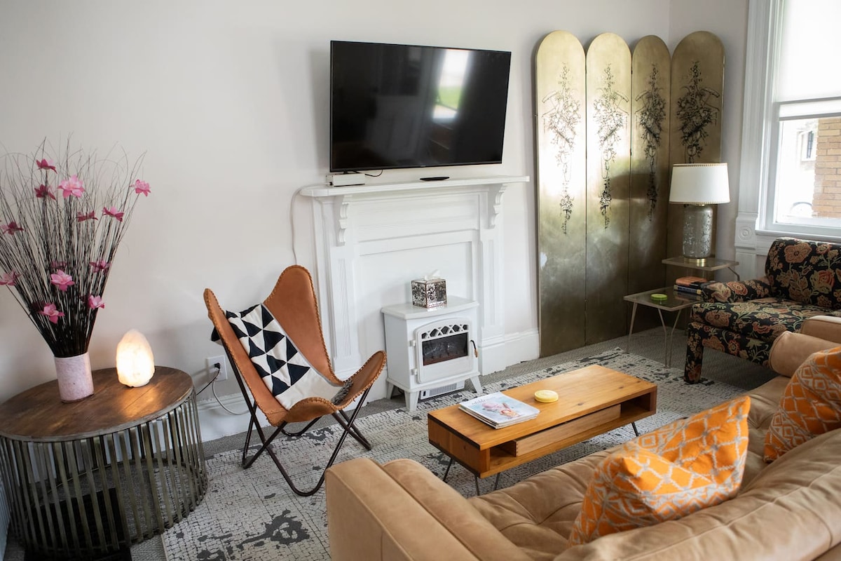 Téigh isteach i do thearmann príobháideach tí aíochta i gcroílár Chearnóg an Fhuaráin. Tugann an teach iompair nua - aimseartha nua - thógtha seo i lár an chéid compord, stíl agus príobháideacht iomlán. Bain sult as Wi-Fi tapa, féinseiceáil isteach, agus páirceáil phríobháideach saor in aisce—níos mó ná 1 mhíle ó Staid Lucas Oil agus ó Gainbridge Fieldhouse agus siúlóid ghearr chuig bialanna, beáir agus ceol beo. Foirfe do lánúineacha, do thaistealaithe aonair, nó do chianoibrithe atá ag lorg fanacht gleoite, insiúlta i gceann de na comharsanachtaí is bríomhaire in Indy.
