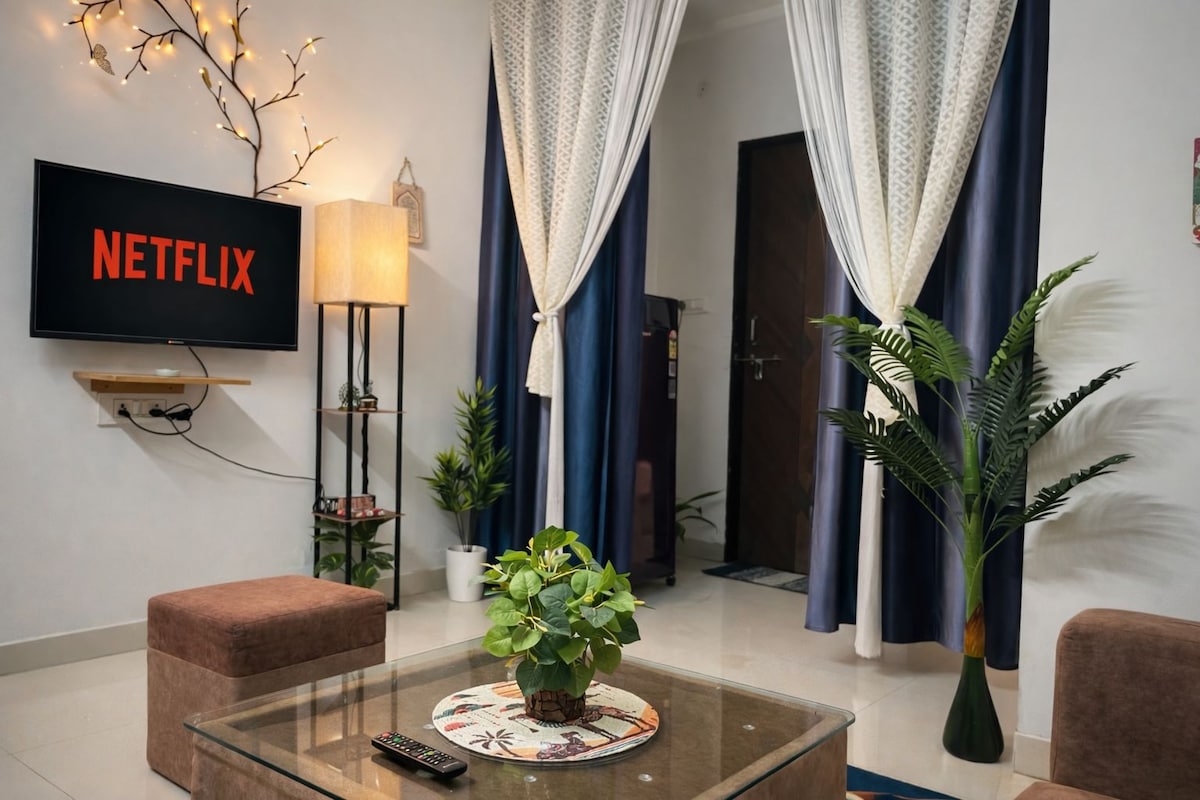 Fáilte go dtí ár n - árasán 2BHK fairsing compordach, atá suite go hidéalach díreach nóiméad ó Ospidéal Aurobindo. Foirfe do gach cineál taistealaí - cibé acu an bhfuil tú anseo le haghaidh gnó, cúraim sláinte nó fóillíochta - cuireann ár n - árasán fanacht suaimhneach agus áisiúil ar fáil. Is féidir leat scíth a ligean i do chompord tar éis lá gnóthach. Tá saoráidí nua - aimseartha san árasán lena chinntiú go bhfuil d'fhanacht taitneamhach agus gan stró. Is rogha iontach é dóibh siúd atá ag iarraidh iniúchadh a dhéanamh ar an gcathair nó taitneamh a bhaint as tearmann síochánta.