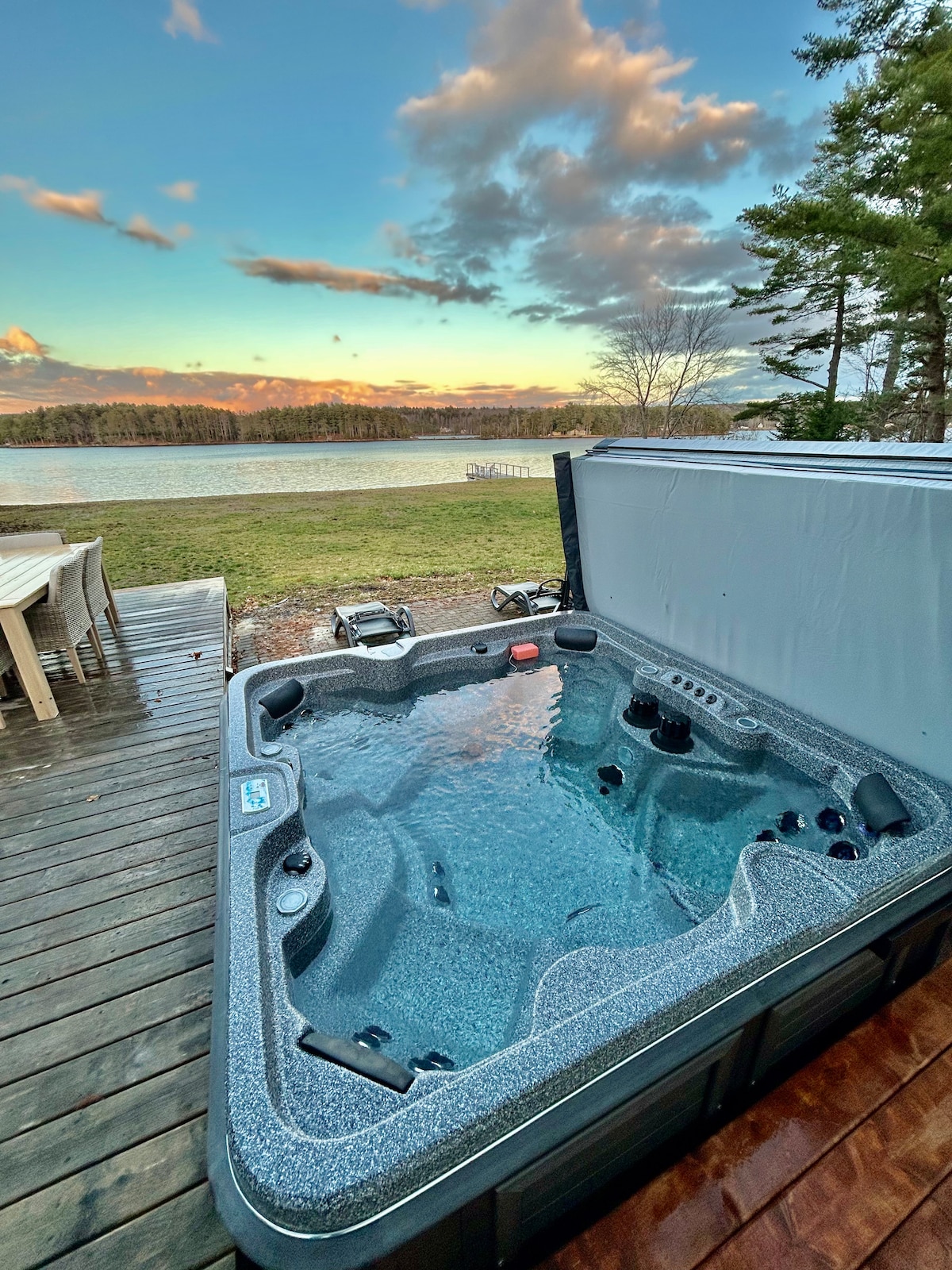 Teachín stiúideo teolaí cois farraige ina bhfuil leaba bhanríona déanta le haghaidh saoire rómánsúil nó athshocruithe aonair. Tá deic chumhdaithe le beárbaiciú própáin, teallach própáin, cistin lánfheistithe, Teilifís Chliste, agus rochtain ar thrá phríobháideach d'aíonna amháin. Oiriúnach do pheataí, síochánta, agus díreach 30 nóiméad ó Halifax. Breiseán roghnach don tobán te sáile dóite adhmaid agus don sabhna cois farraige. Féach “Rudaí eile le tabhairt faoi deara” le haghaidh sonraí ar ár saoráidí dóite adhmaid. Ná bíodh drogall ort teagmháil a dhéanamh le haon cheisteanna praghsála.