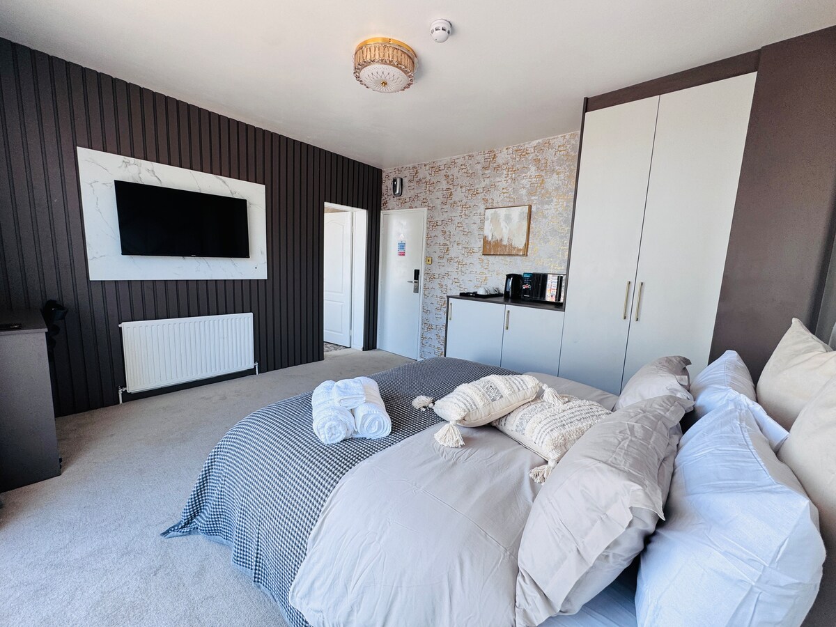 Stay at the Pacific Hotel, just steps from Clacton-on-Sea beach and Pier. Enjoy spacious rooms with king-sized beds and stunning sea views, fully equipped to provide a relaxing seaside escape. Perfect for families, couples, or weekend escapes. Walk to the beach, arcades, shops, and restaurants. Wake up to ocean views and unwind in comfort. Book your beachfront getaway today at one of Clacton's top-rated stays. Rest assured, this stylish and unique place sets the stage for a memorable trip!