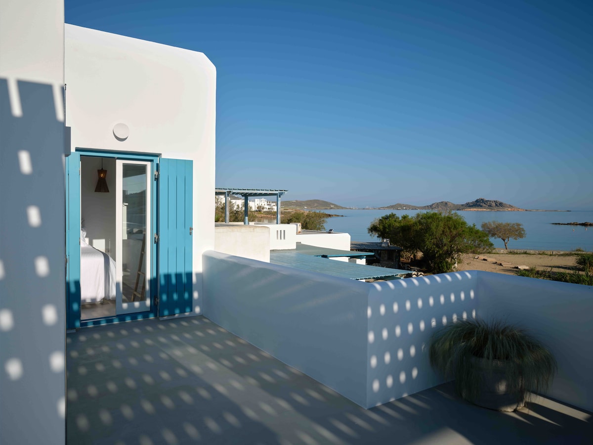 Neadaithe i mBaile Naxos le radhairc iontacha amach go dtí an Mhuir Aeigéach cuirimid an deis ar fáil d'aíonna eispéireas suaimhneach eisiach a fháil. Laistigh de rochtain éasca ó PORTARA cáiliúil an oileáin agus Caisleán Veinéiseach. Is é ár bhfealsúnacht fáilteachas den chéad scoth a thairiscint mar aon le príobháideacht gan sárú. I bhfad níos mó ná teach a chuireann ár svuít deluxe compord uachtarach ar fáil in éineacht le stíl elegance agus fáilteachas uathúil na Gréige. is línte íosta te a chruthaíonn atmaisféar suaimhneach.