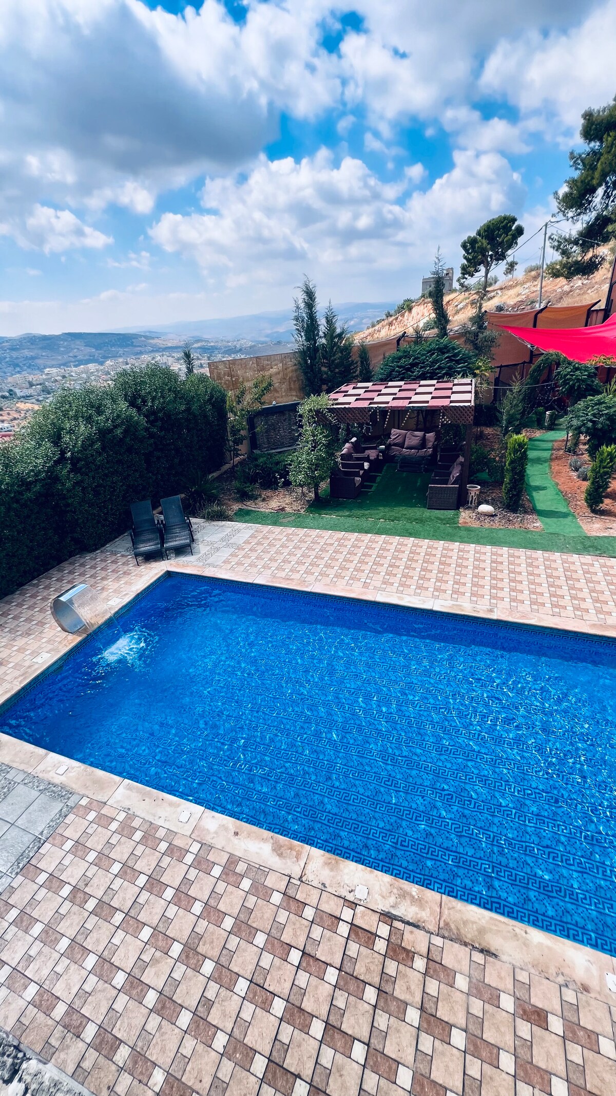 Lig do scíth sa teaghais adhmaid shuaimhneach ghalánta seo atá deartha chun do mhian a bheith ar do shuaimhneas agus ar do shuaimhneas a shásamh agus eispéireas iontach áineasa a thabhairt duit agus eispéireas snámha a thabhairt duit in uisce te Jacuzzi in áit chúlráideach i nglacadh leis an dúlra le do mhuintir Tá an tsiamsaíocht cúig réalta riachtanach go léir sa teach fairsing seo, ina bhfuil scuaba óstáin, aerchóiriú ar leith, idirlíon in aghaidh na huaire, balcóin d'fhoraoisí gleoite Ajloun agus clós taobh amuigh ina bhfuil na fánaí suite in aice le do eas