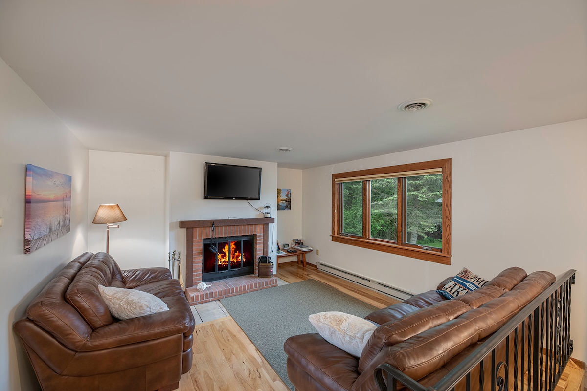 Áit chruinnithe speisialta don teaghlach agus do chairde. Tá an tábla itheacháin ar feadh 12 ag breathnú amach ar an loch. Dhá áit chónaithe mhóra. Teallach taobh istigh agus fáinne dóiteáin lasmuigh. Cistin lánfheistithe. Ceithre sheomra leapa le leapacha rí, tá cúpla bunc ag trí cinn freisin. 3 sheomra folctha iomlána, dhá théitheoir uisce acmhainne móra. Tá gríoscán gáis agus limistéar picnice lasmuigh ag breathnú amach ar an loch soiléir criostail 550 acra le bréagáin galore uisce (cadhcanna, SUPanna, canúáil, bád rámhaíochta, féach an treoirleabhar). Céimeanna chuig an loch, nóiméad go dtí an cnoc sciála. Duga 5/23 -9/15
