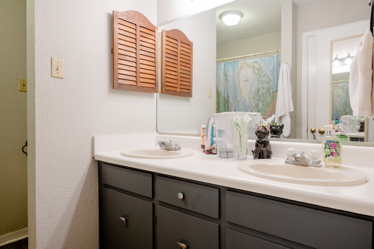 Is breá lenár n-aíonna an tearmann beagbhaile seo i Sean-Teach Deisceartach. Tá póirse agus clós fálaithe ag an árasán príobháideach. I measc na roghanna codlata tá leaba iomlán, cathaoir chodlata luí, agus leaba dhá phearsa sa chuasán te! Tá cistin iomlán, folcadh príobháideach, Wi-Fi Tapa agus Teilifís ann. Suíomh den scoth: Siúl chuig siopaí, 30 nóiméad go tránna Dauphin Island agus gar do nithe is díol spéise do thurasóirí. 20 nóiméad go Mobile/Moss Point/Pascagoula. Áisiúil do scaglann Chevron agus I-10. 2 uair an chloig go New Orleans. Foirfe don obair nó don saoire!
