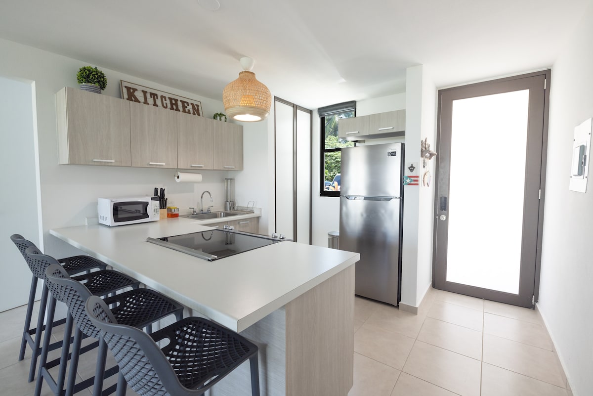 Fáilte chuig do thearmann aon seomra leapa in Aguadilla, Pórtó Ríce! Cuireann an t - árasán seo atá deartha go cúramach compord agus stíl ar fáil, ina bhfuil leaba theolaí, seomra folctha príobháideach, agus cistin atá feistithe go hiomlán. Bain sult as stáisiún oibre tiomnaithe, Wi - Fi ardluais, agus teilifíseán cothromscáileáin. Miontuairiscí ó bhreis agus 10 dtrá iontacha agus i gcroílár mhol gastranómach Aguadilla, is meascán foirfe é den scíth agus den áisiúlacht don obair agus don fóillíocht araon.
