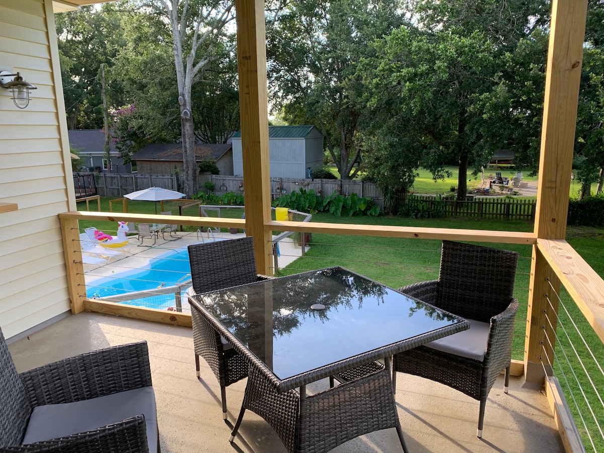 Neadaithe i dtearmann éan ar chúilín taoide lán darach le radhairc fhairsinge póirse ar chuan Charleston, tar ag roinnt caife le cairde agus le do mhuintir agus féach ar éirí gréine iontach ar maidin ar riasc. Suite nóiméad go dtí an cáiliúil "Edge of America" Folly Beach, cuirtear cathaoireacha trá, fuaraitheoirí agus tuáillí ar fáil le haghaidh turas trá taitneamhach. Lonnaithe go lárnach, is turas gearr thú chuig Charleston stairiúil, Crios Splanc Pháirc Chontae James Island, agus oileáin bhacainne in aice láimhe. Páirceáil sráide easca.