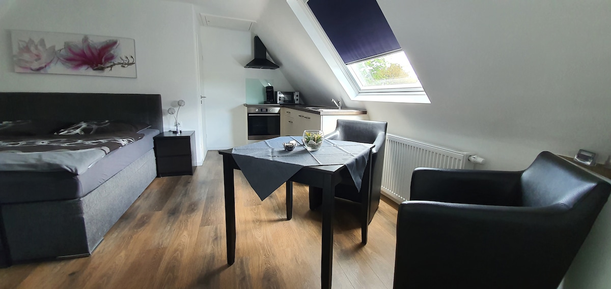 Tá an t - árasán álainn geal timpeallaithe ag páirceanna ar imeall Bislich. Rinneadh an t - árasán a athchóiriú go hiomlán ag deireadh 2018, tá téamh faoi urlár an árasáin agus tá cistin nua lánfheistithe ann le miasniteoir agus seomra folctha nua. Tá na seomraí leapa feistithe le hurláir lannaithe, gach áit mhaireachtála eile le tíleanna móra. Roghnaítear an troscán le go leor grá do mhionsonraí agus bíonn atmaisféar te ann. Tá ardán príobháideach (le beárbaiciú) ar fáil freisin.