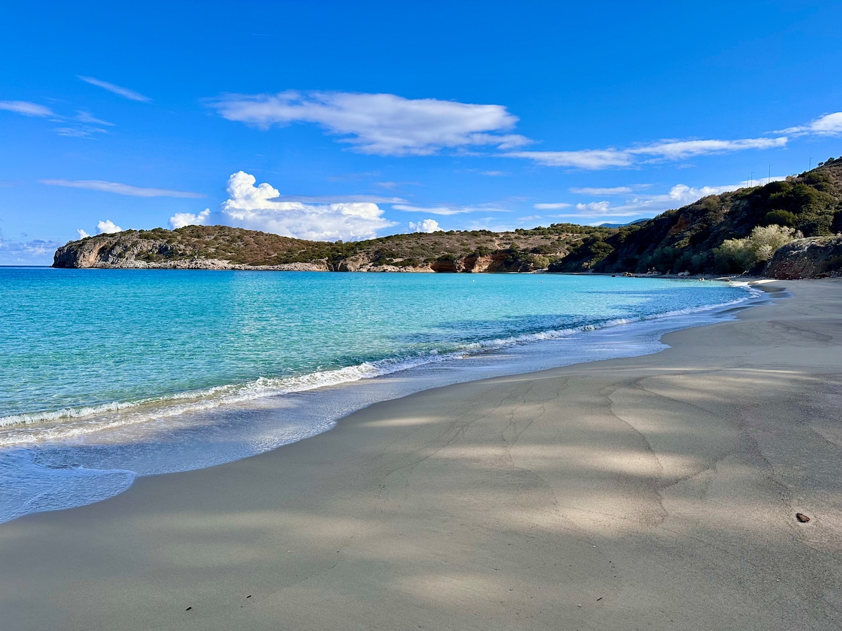 Árasán cois trá ag Voulisma Beach, an Chréit