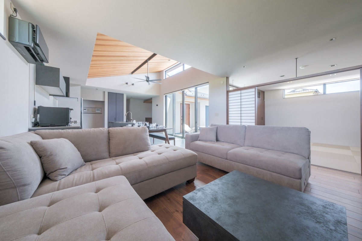 Is teach nua - aimseartha Seapánach é seo inar féidir leat fanacht amhail is dá mbeifeá i do chónaí ann. Áit inar féidir tú a shaoradh ó strus laethúil agus d'anam a ghlanadh. Tá an foirgneamh seo neadaithe i lár sléibhe atá timpeallaithe ag sléibhte agus páirceanna ríse. Is féidir leat am ciúin a chaitheamh le do theaghlach, le do chairde, le do leannán agus le do mhuintir i dteach príobháideach nua - aimseartha de chuid na Seapáine a bhfuil cumha air.