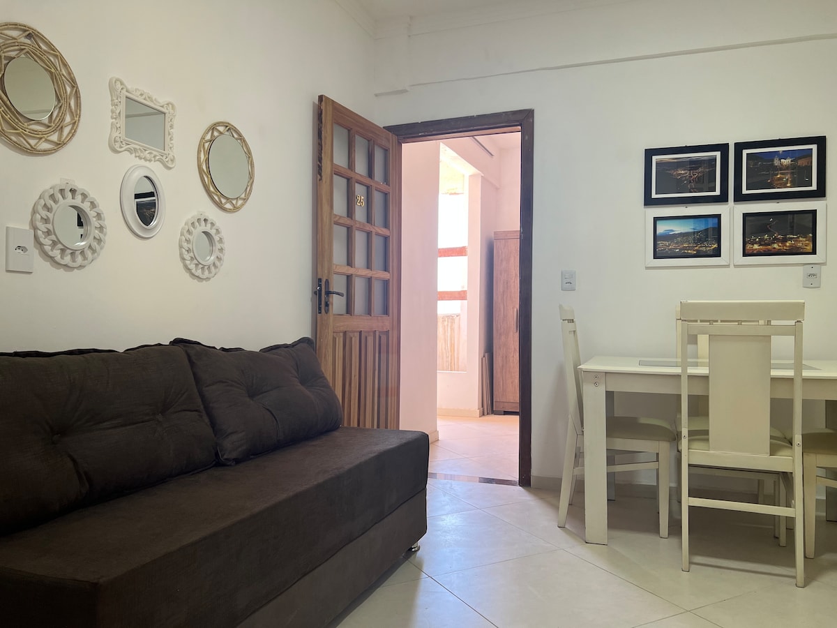 Spás galánta teolaí, maisithe go maith, ag tomhas 25 m2. Tá leaba dhúbailte agus tolg dúbailte ann, agus tá sé d'acmhainn ann suas le 4 dhuine a óstáil. Foirfe do bhaill den teaghlach céanna, do pháistí nó do dhéagóirí, toisc nach bhfuil an tolg dúbailte an - leathan. Tá Kitnet suite go maith, gar don ollmhargadh, don mhargadh agus gar do lár na cathrach. Tá sé os comhair Lámhach an Chogaidh agus gar don Choláiste Stáit. Tá an Foirgneamh á thógáil ach tá na struchtúir agus na spásanna laistigh réidh agus ag obair.