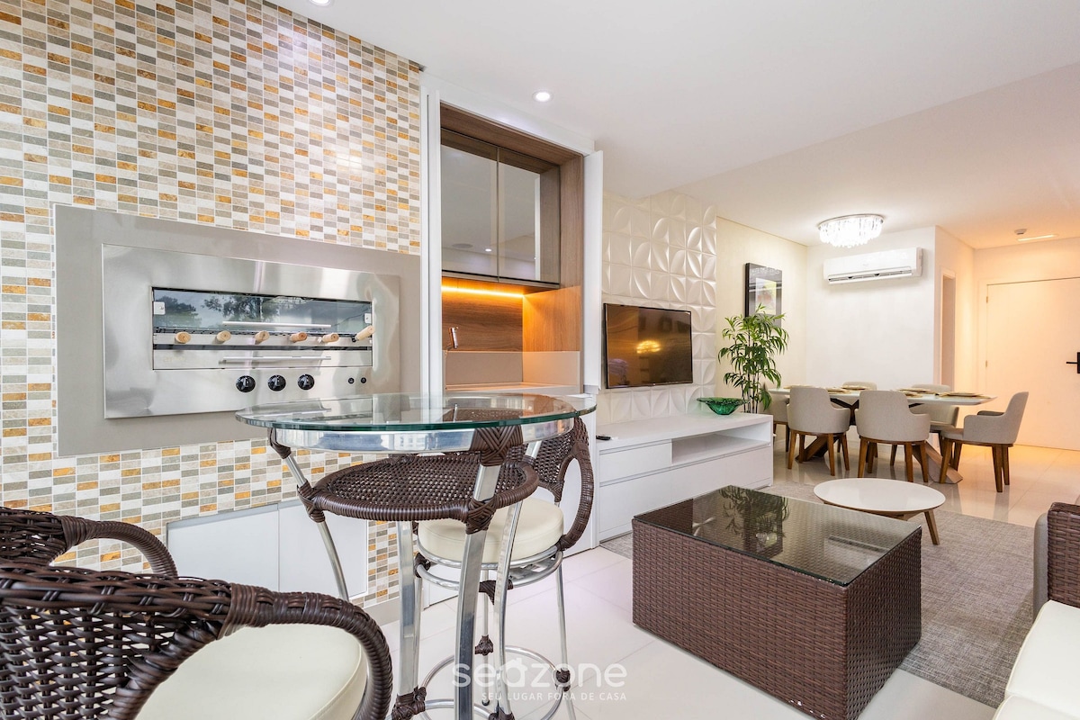 Belíssimo apto de alto padrão localizado em Balneário Camboriú, região norte, na rua da roda gigante! Composto por 4 suítes, todas devidamente climatizadas e com blackout 100% elétricos, living aberto e integrado com a copa para maior amplitude e integração, finamente decorado para fazer aquele conforto à mais. Cozinha muito bem equipado para curtas e longas estadias. Acomoda até 8 hóspedes, fornecemos roupas de cama e banho para todos os hóspedes. 2 Vagas de garagem e Internet Rápida