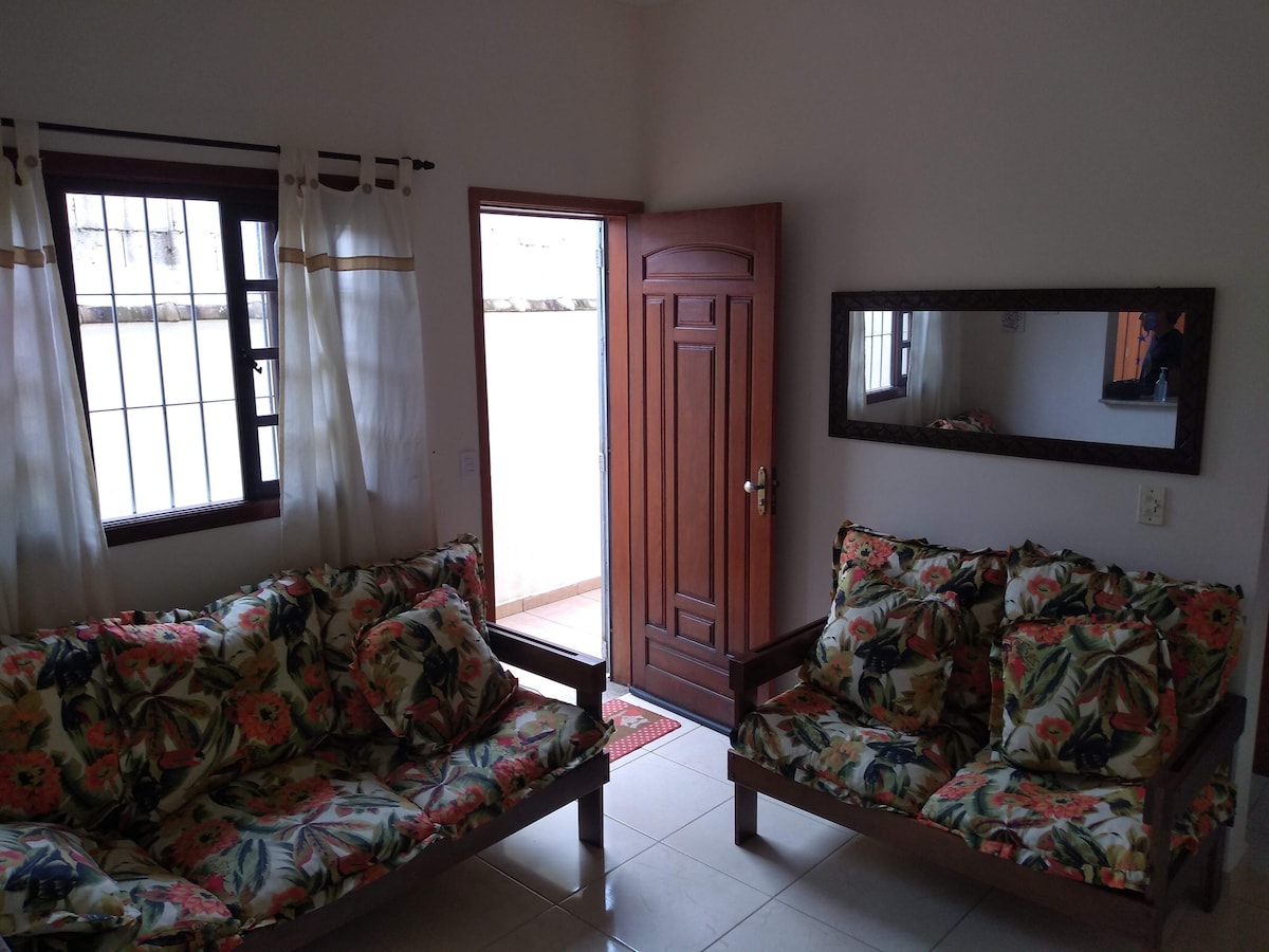 Faigh an teach iontach seo ar cíos anois ar thrá Itanhaém le linn snámha 9 méadar, deic mhór agus limistéar beárbaiciú ina bhfuil balcóin mhór agus cistin atá feistithe leis na huirlisí riachtanacha go léir. Tá an beárbaiciú le sorn adhmaid agus spás gourmet oiriúnach do bhéilí lasmuigh. Tá 2 sheomra leapa sa teach, ceann amháin le leaba dhúbailte agus leapacha bunc, agus ceann eile le leaba dhúbailte agus tocht singil, chomh maith le 2 sheomra folctha shóisialta. Tá an seomra suí fairsing, le leaba thoilg, tolg eile agus tábla le 4 chathaoir. Spotaí 4 ghluaisteán