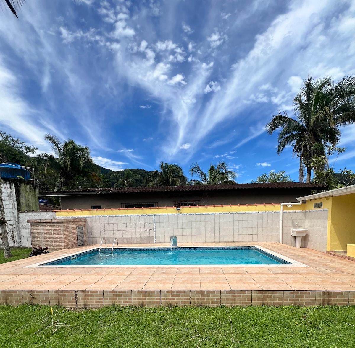Lig do scíth leis an teaghlach ar fad sa lóistín ciúin seo. Caith an lá ag Guarau Beach (3km - 10 nóiméad) nó Cachoeira do Paraiso (10.6 km) nó in Barra do Una (16.4 km) agus lig do scíth ar chúlchiste comhshaoil! Tá mionchonair againn, loch, linn snámha nádúrtha, crann fige céad bliain d'aois, spás mór ina bhfuil beárbaiciú, foraois dhúchasach, réimse leathan éan agus bláthanna. Glacaimid le peataí. Níl línéadach leapa ná tuáillí ar fáil.